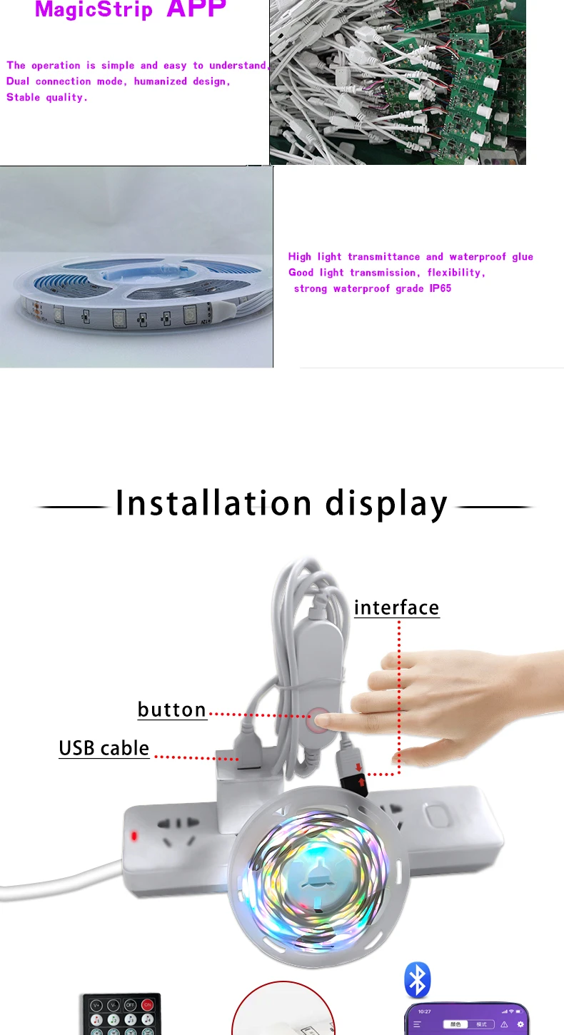 5 м и 10 м спецификация: Тип светодиодный Светодиодная лента Напряжение: 5 В постоянного тока (источник питания USB) Водонепроницаемый Светодиодный да: SMD 5050 20 м спецификация: Тип: Светодиодная лента USB Напряжение: 12 В, 2 А Водонепроницаемый Светодиодный да: SMD 5050