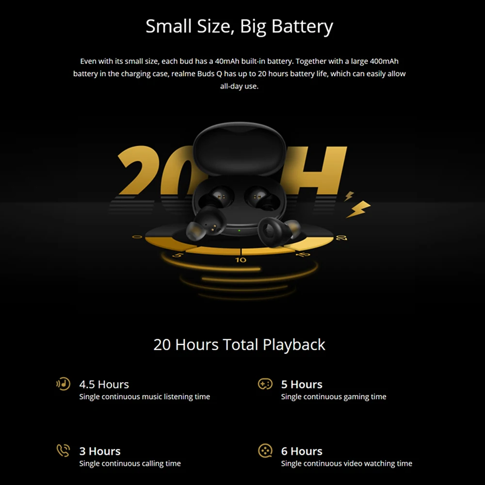 Беспроводные наушники realme Buds Q TWS BT 5.0, IPX4, водонепроницаемые, 400 мАч, двойные хосты, наушники с умным сенсорным управлением, микро-usb зарядкой, шумоподавлением, Stero, звуковая спортивная Гарнитура, совместимая с Andriod iOS и другими устройствами BT для всех смартфонов