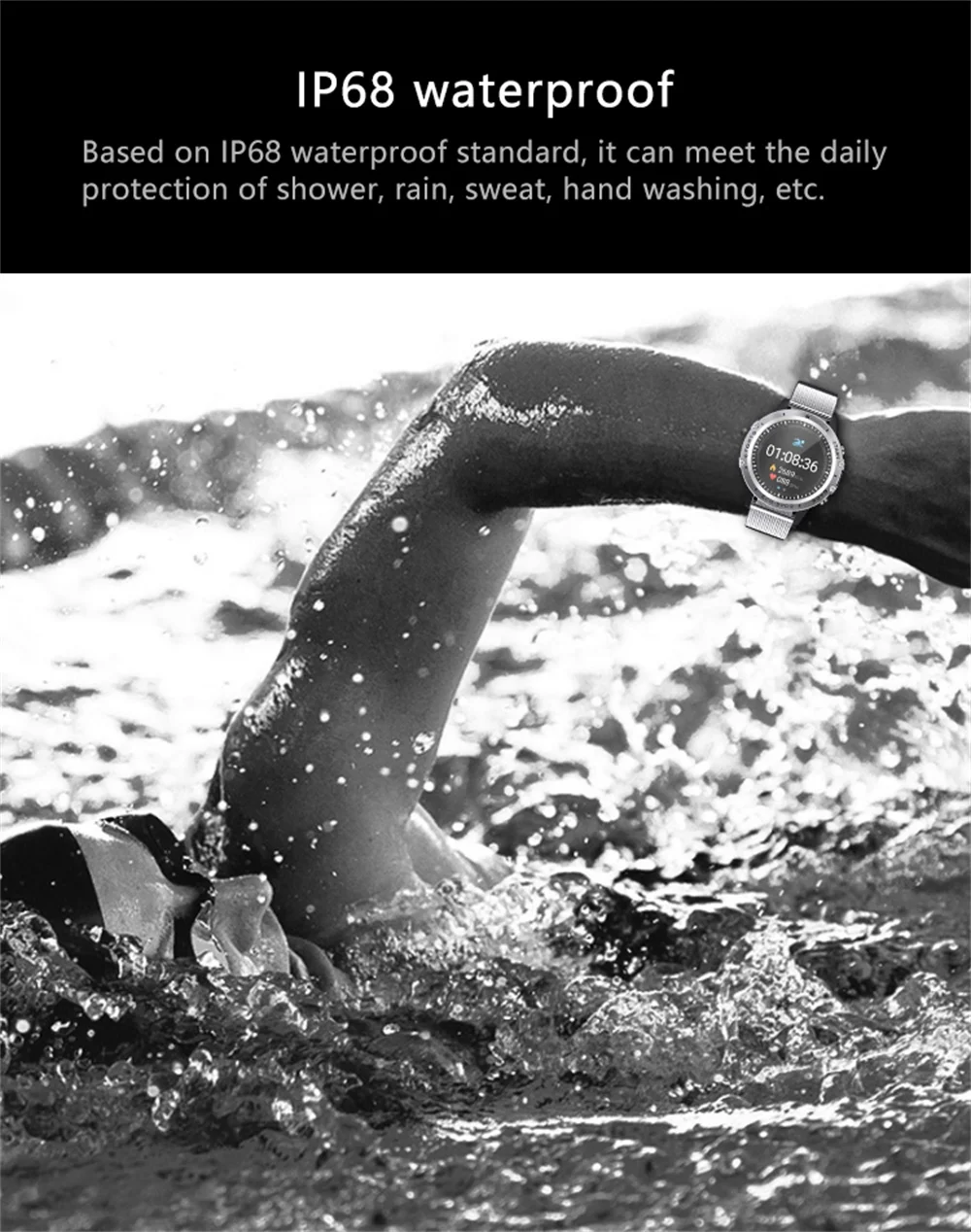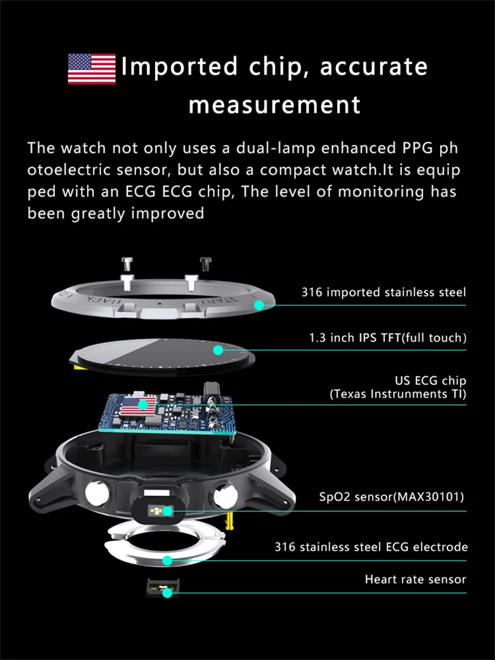 * Материал: корпус из нержавеющей стали 316, пластиковый нижний чехол, ремешок для часов: экологически чистый ТПУ или металлический кожаный ремешок