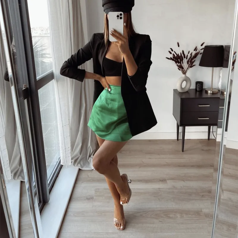Женская элегантная зеленая тонкая атласная короткая юбка 2021 Весенняя модная уличная мини-юбка на молнии для девочек Y2K юбка-карандаш с высокой талией