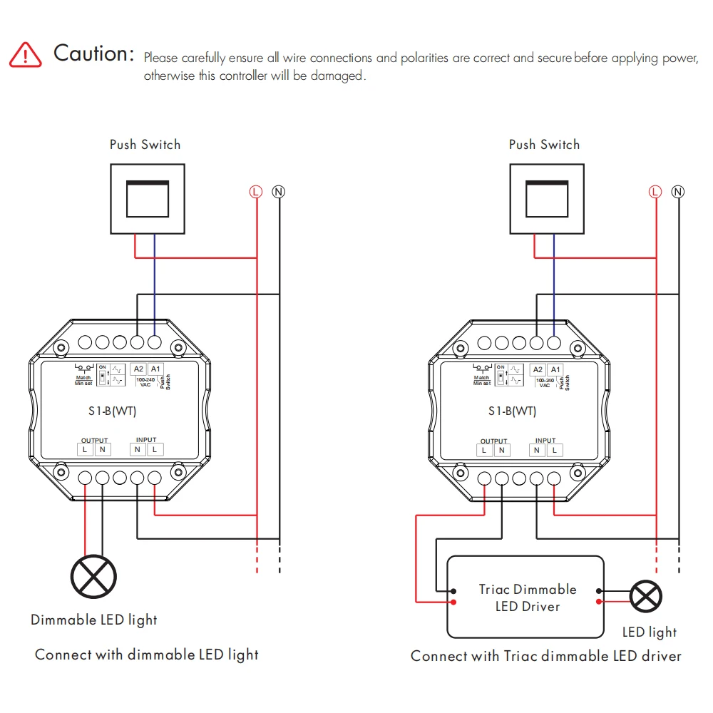 Выберите передний (фазовый) Диммер или заднюю кромку (заднюю фазу) диммер в соответствии с диммируемым светодиодным индикатором или драйвером.