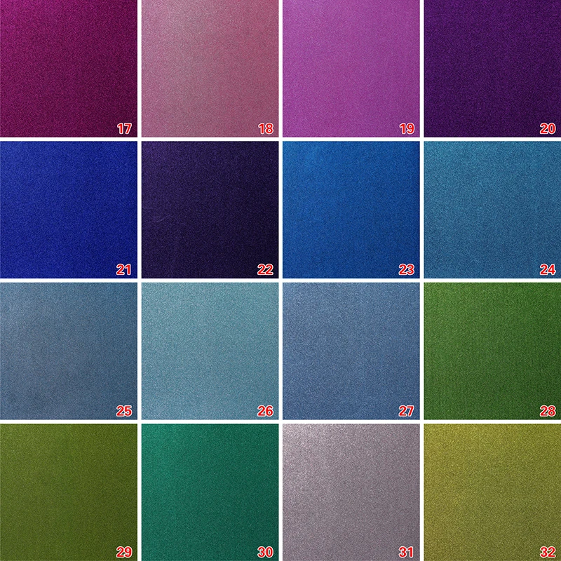 Яркий и ослепительный, цвет меняется, красочный, с металлической текстурой, полностью покрывает оригинальный цвет одежды.