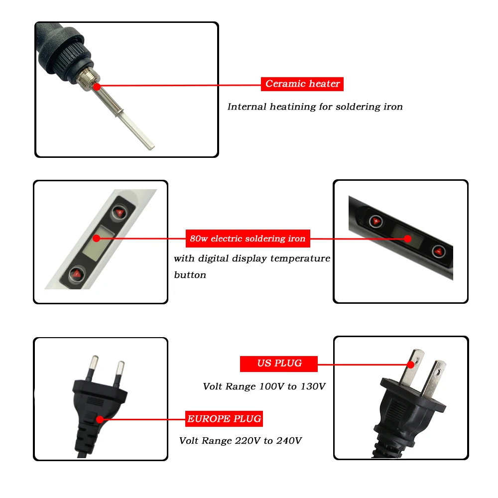 Цифровой электрический паяльник 60 Вт/80 Вт 220 В/110 В, наконечники для паяльника с регулируемой температурой/инструменты для оловянной проволоки, аксессуары