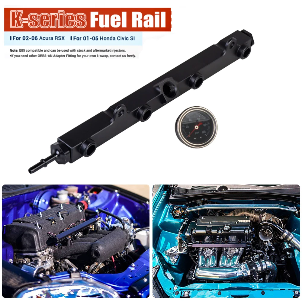-100% гарантия качества протестирована, более отзывчива, дешевле, проще в установке. -Рельс включает отверстие 1/8 "NPT, которое позволяет установить датчик давления топлива непосредственно на топливную рейку. Это помещает датчик давления топлива в место, которое легко видно, так что вам не нужно тыкать в отсек двигателя просто, чтобы увидеть, есть ли у вас давление топлива. -Все порты могут принимать a -8 ORB фитинг на входе (ы) и выходе позволяет запускать либо-6 или-8 топливных линий. -Это расположено так, что топливная линия может проходить между средними двумя выпускными баллонами (в зависимости от впускного коллектора). Это отличный вариант для тех, кто хочет подвернуть свои провода и линии. -Рельс был показан для крепления к коллекторам впускного коллектора PRB, RBC и RBB без каких-либо изменений. Любые впускные коллекторы, которые имеют одинаковые точки крепления топливных рельсов, как PRB, RBC или RBB, также должны принять этот рельс. -Если у вас есть 02-05 Civic Si или 02-06 RSX, нажимной топливный фитинг для вас. Монтируется на конце топливной магистрали, эта часть поставляется с топливной магистралью. Он оснащен расширенным фитингом, чтобы расслабить напряжение на топливной линии и помочь с очисткой. Поставляется с уплотнительным кольцом для предотвращения протечек с совместимым E85.