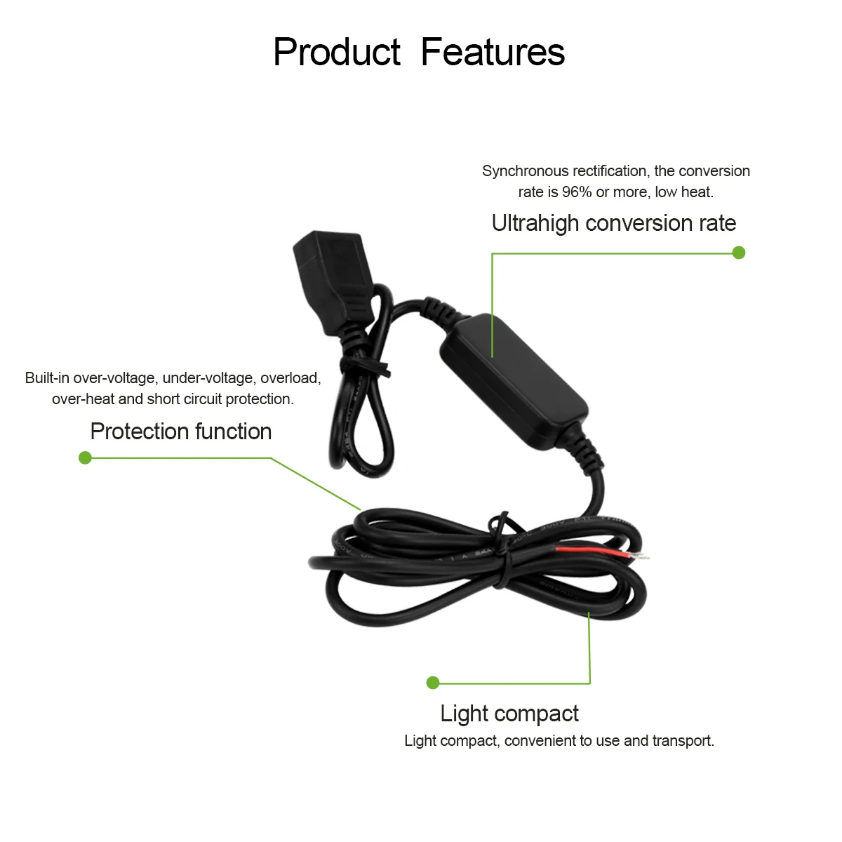 Оснащен одним usb-портом, может быстро заряжать ваш телефон, видеорегистратор, планшет, GPS, электронную книгу и другие устройства с питанием от 5 В.