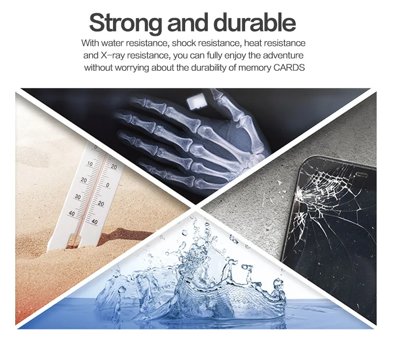 Карта памяти SanDisk Extreme high-speed mobile microSDXC UHS-I является водонепроницаемой/ударопрочной, устойчивой к холоду и рентгеновскому излучению. Вы можете наслаждаться приключением, не беспокоясь о долговечности карты памяти.