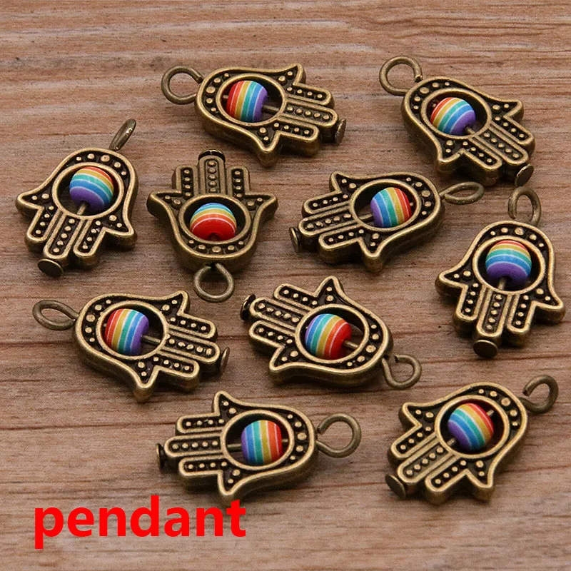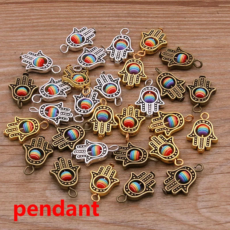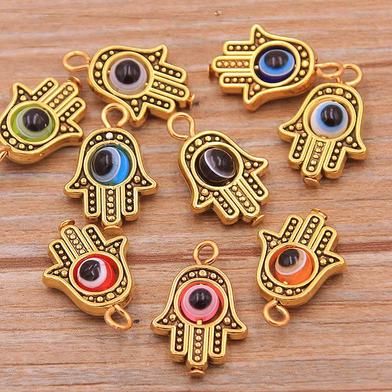 10PCS 12*19mm 3 Color Fatima Hamsa Hand And 9 Color Evil Eye Spacer Bead Charms For DIY Bracelets Jewelry Handmade Making