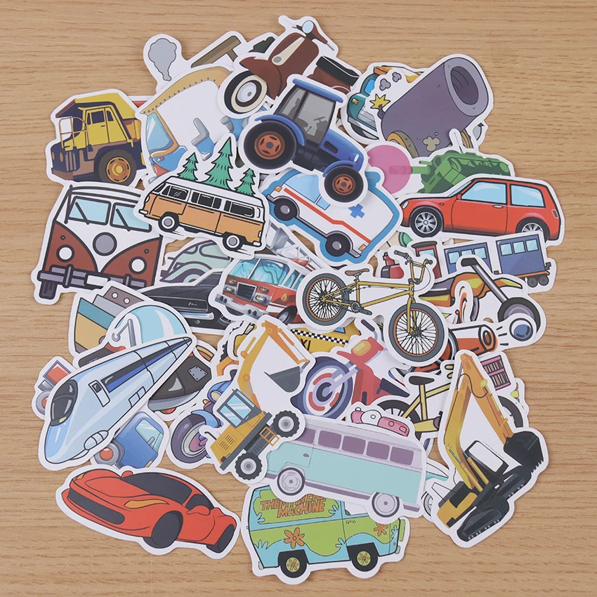 40 шт., мультяшный автомобиль, транспортные средства, ПВХ, водонепроницаемые граффити, детские игрушки, наклейки для чемодана, мотоцикла, скейтборда, наклейки