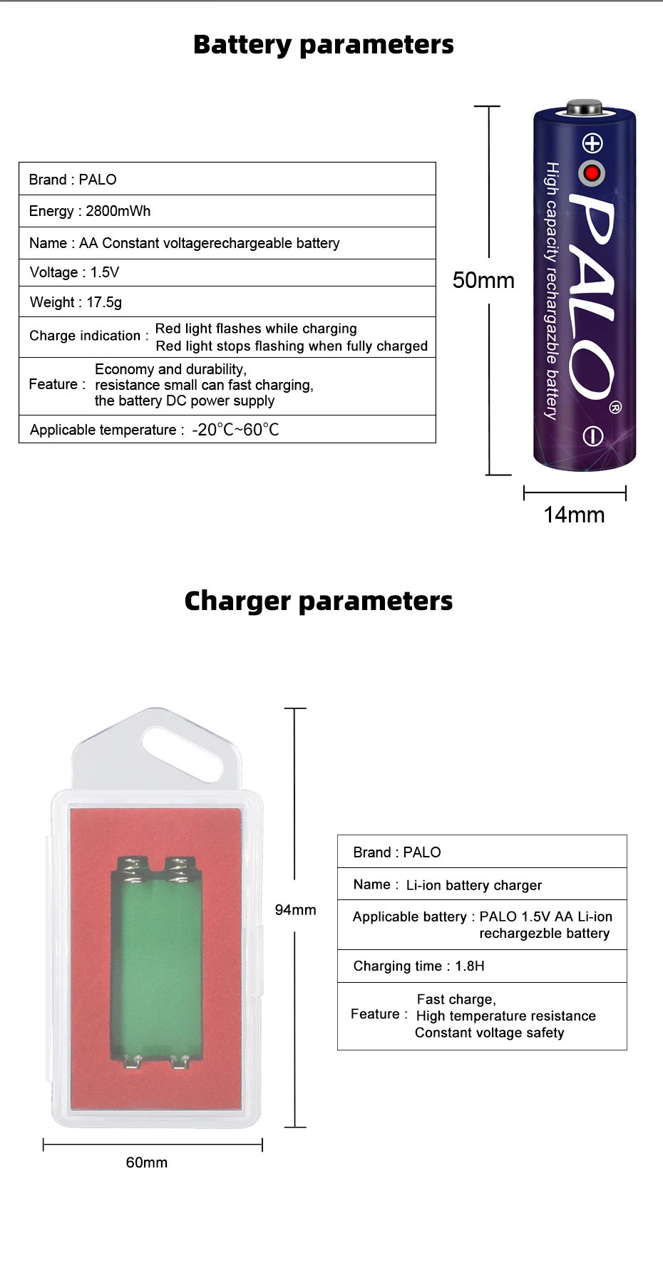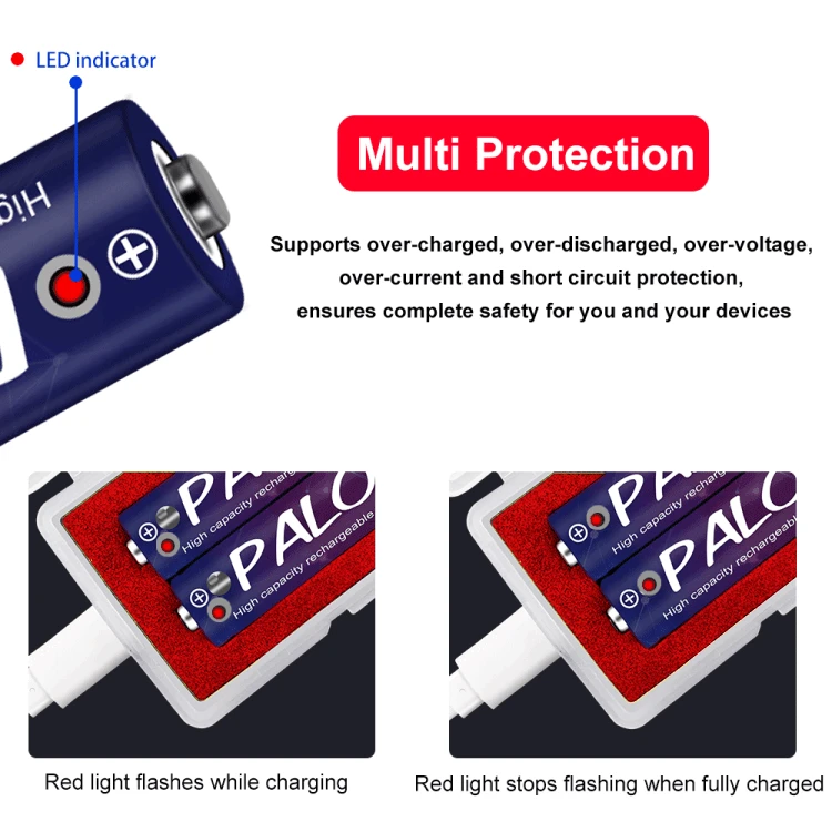 10. Совет: в связи с использованием материалов и принципы работы различных марок 1,5 V батарея отличаются друг от друга, пожалуйста, используйте PALO 1,5 V батарея USB зарядное устройство для зарядки PALO 2800mWh 1,5 V AA литиевая батарея, спасибо.