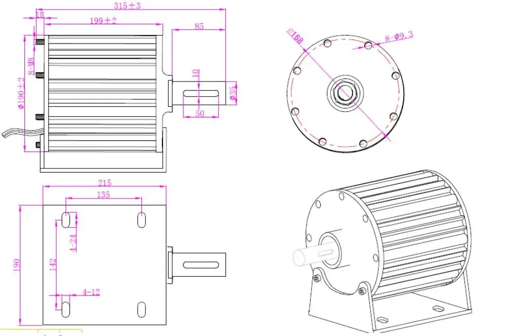 Модель: L-2000 Номинальная мощность (Вт):2000 Вт Максимальная мощность (Вт):2500 Вт Номинальное напряжение (В):48 В/96 в Номинальная скорость вращения (об/м):400 об/мин/600 об/мин Вес нетто (кг):18 кг Выходной ток: переменный ток Генератор: 3-фазный PMG Класс изоляции: F Срок службы: более 20 лет Подшипник: HRB или для вашего заказа Материал вала: нержавеющая сталь Материал корпуса: алюминиевый сплав Материал с постоянным магнитом редкоземельный NdFeB Класс защиты: IP54 Смазка: смазка Рабочая температура:(-40) - 80