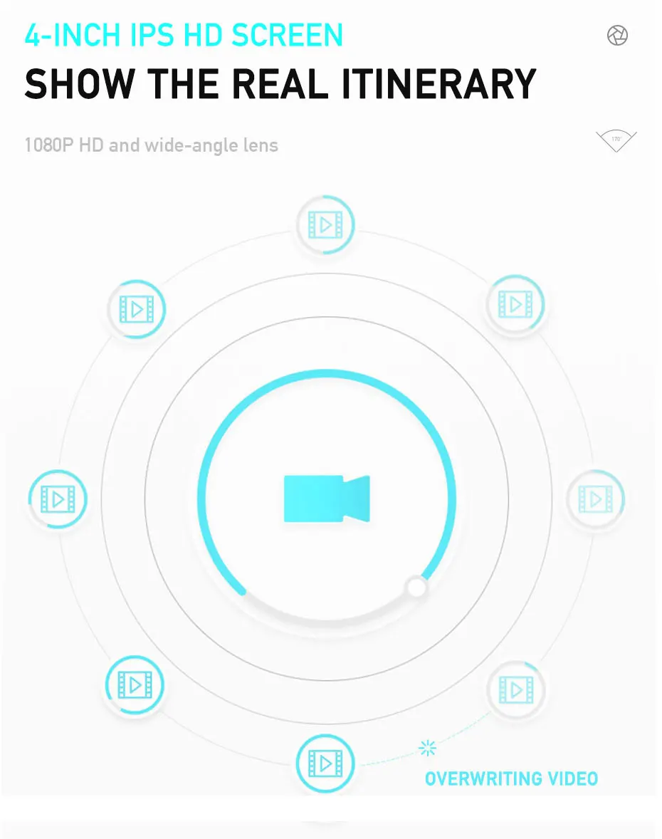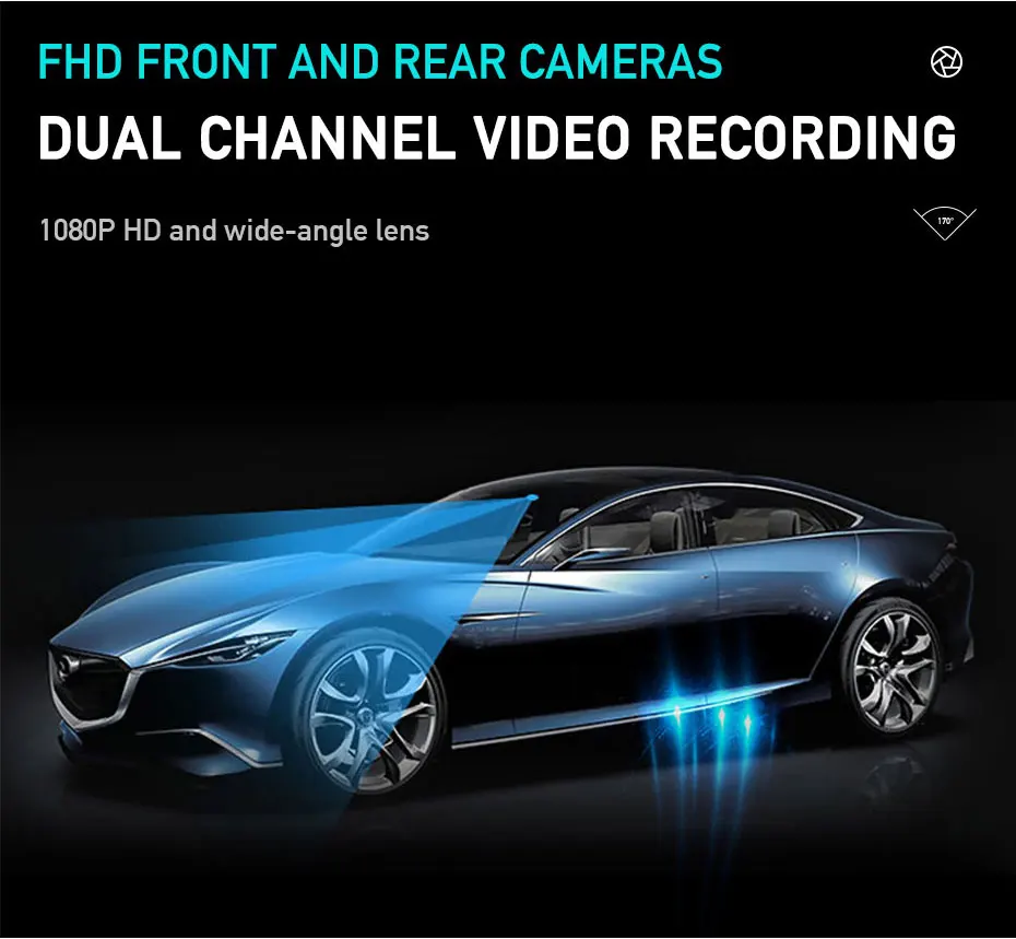170° wide-angle front camera and 140° wide-angle rear camera, monitor your vehicle in all directions and record all possible accidents in time