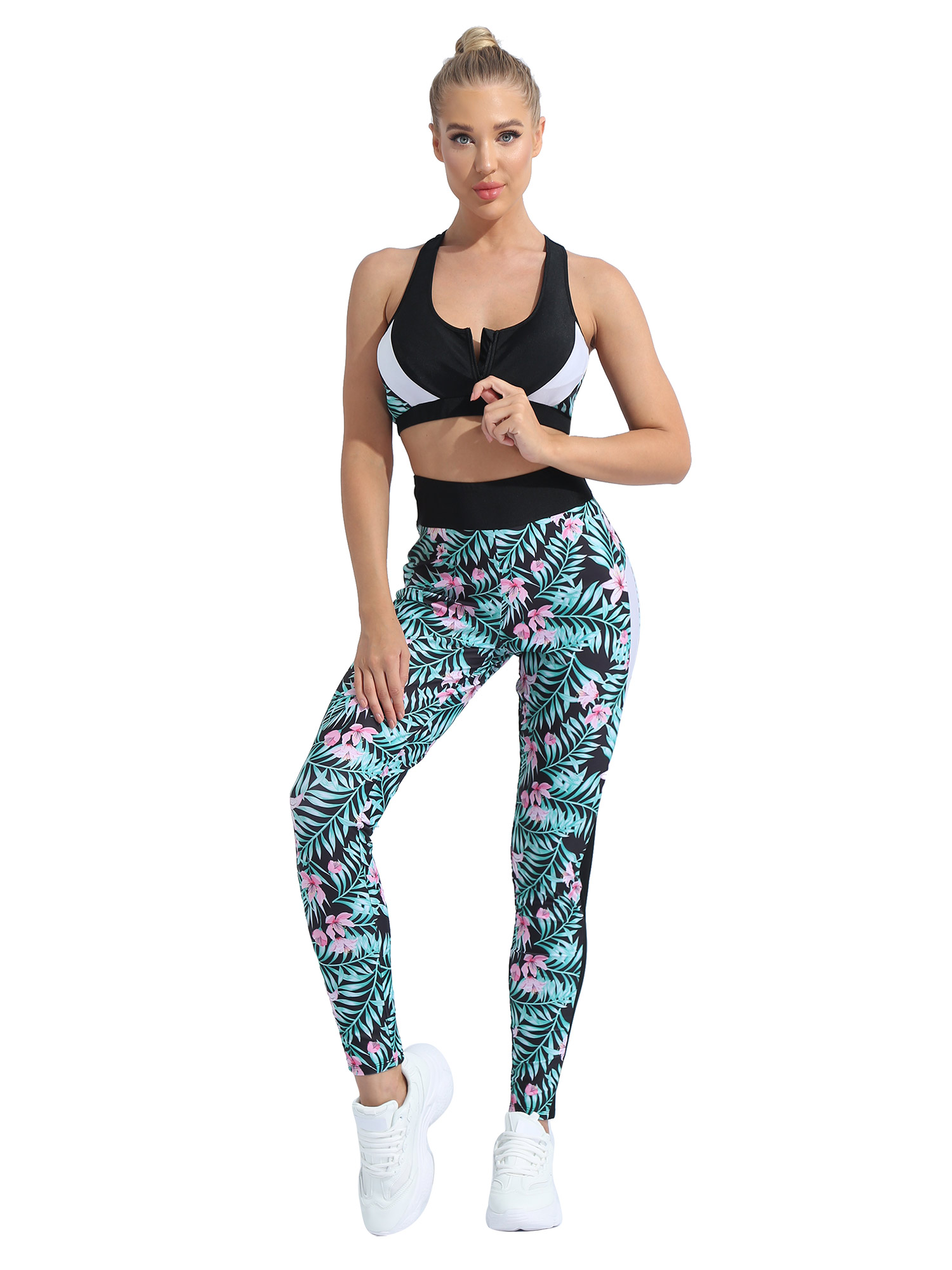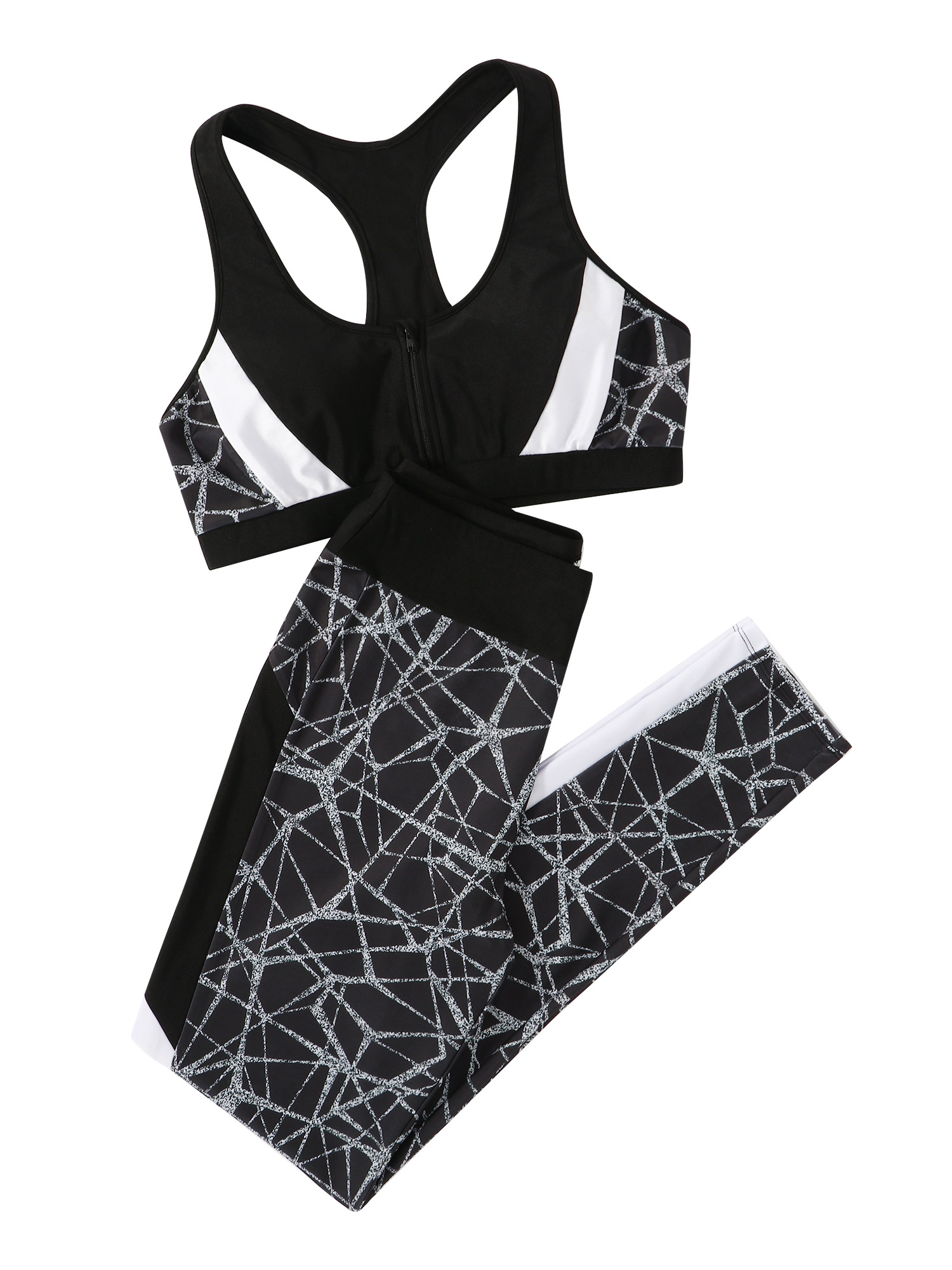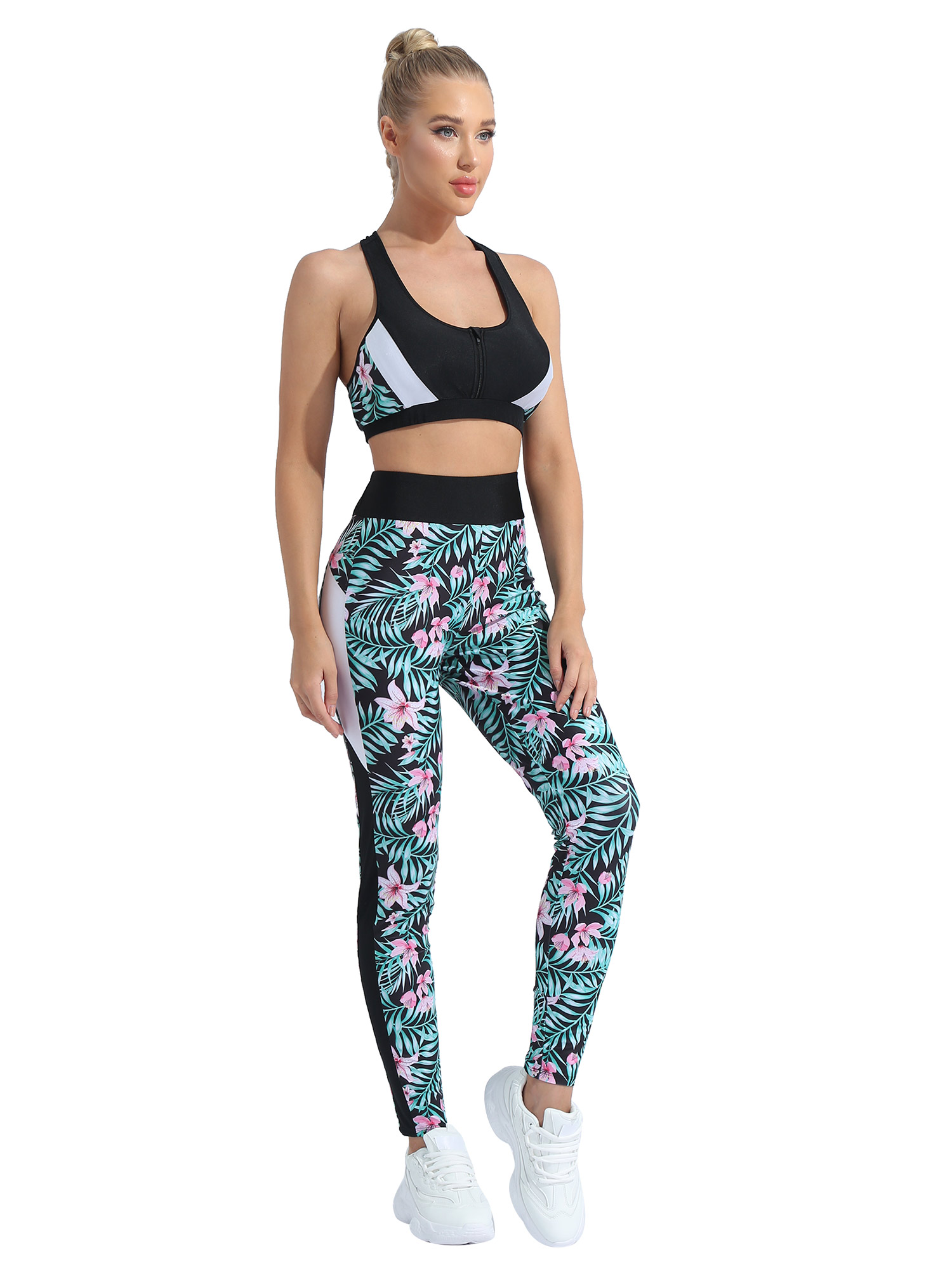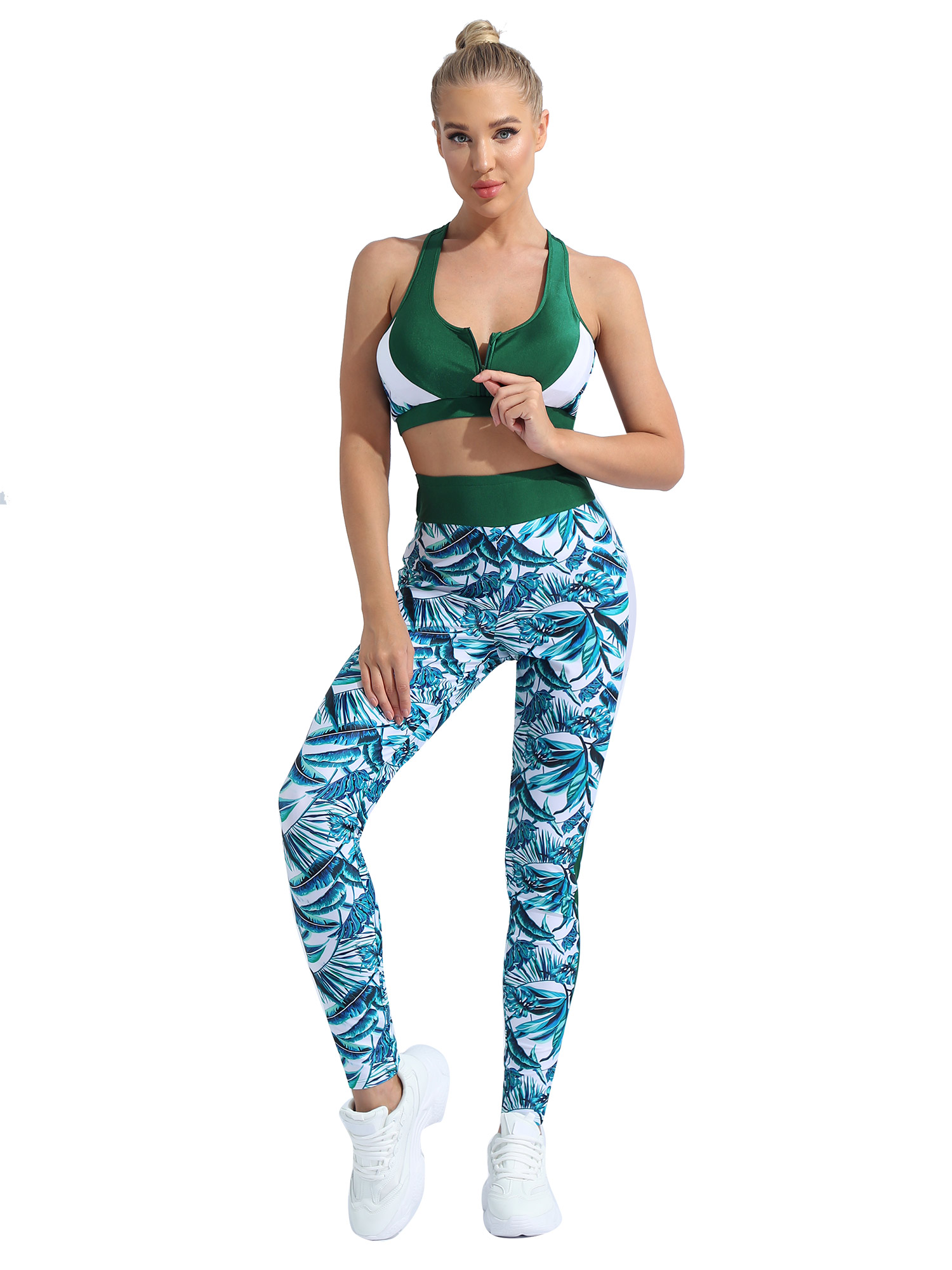Женский спортивный костюм с верхом на спине и леггинсами.