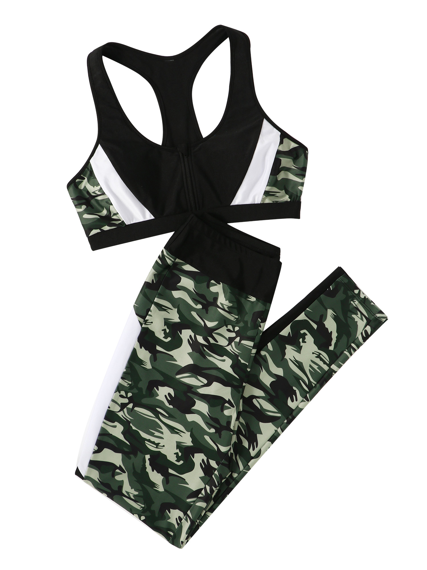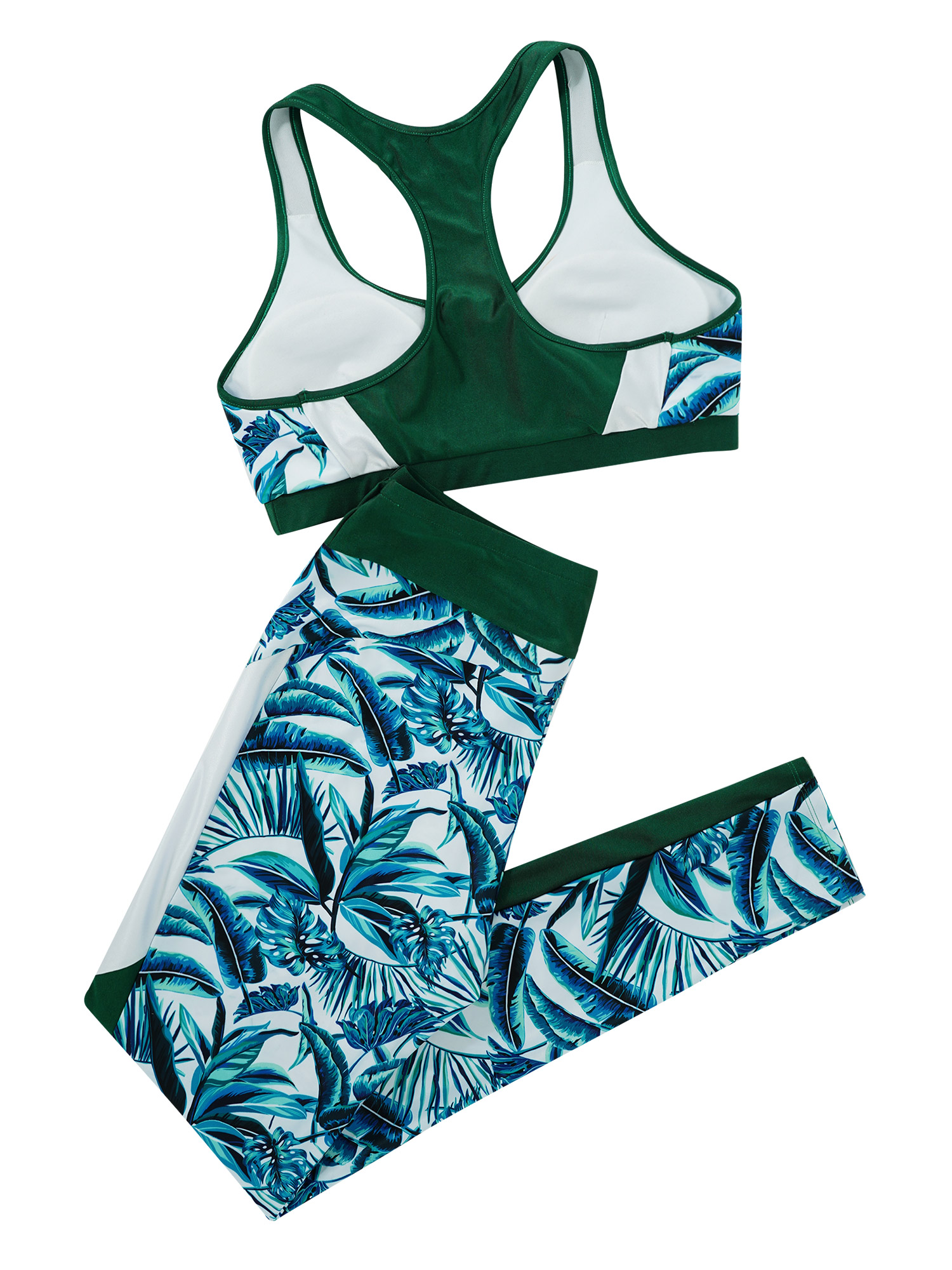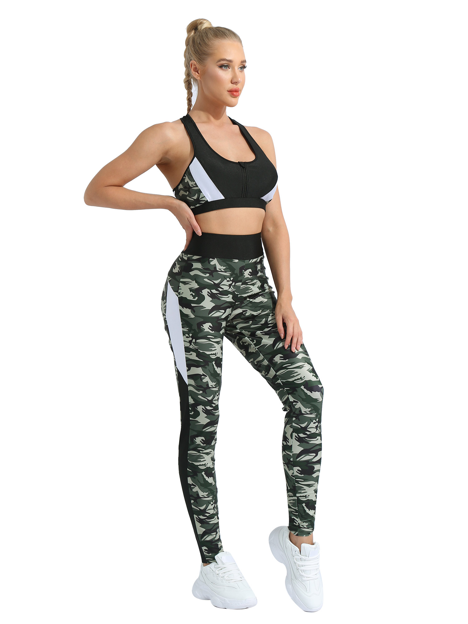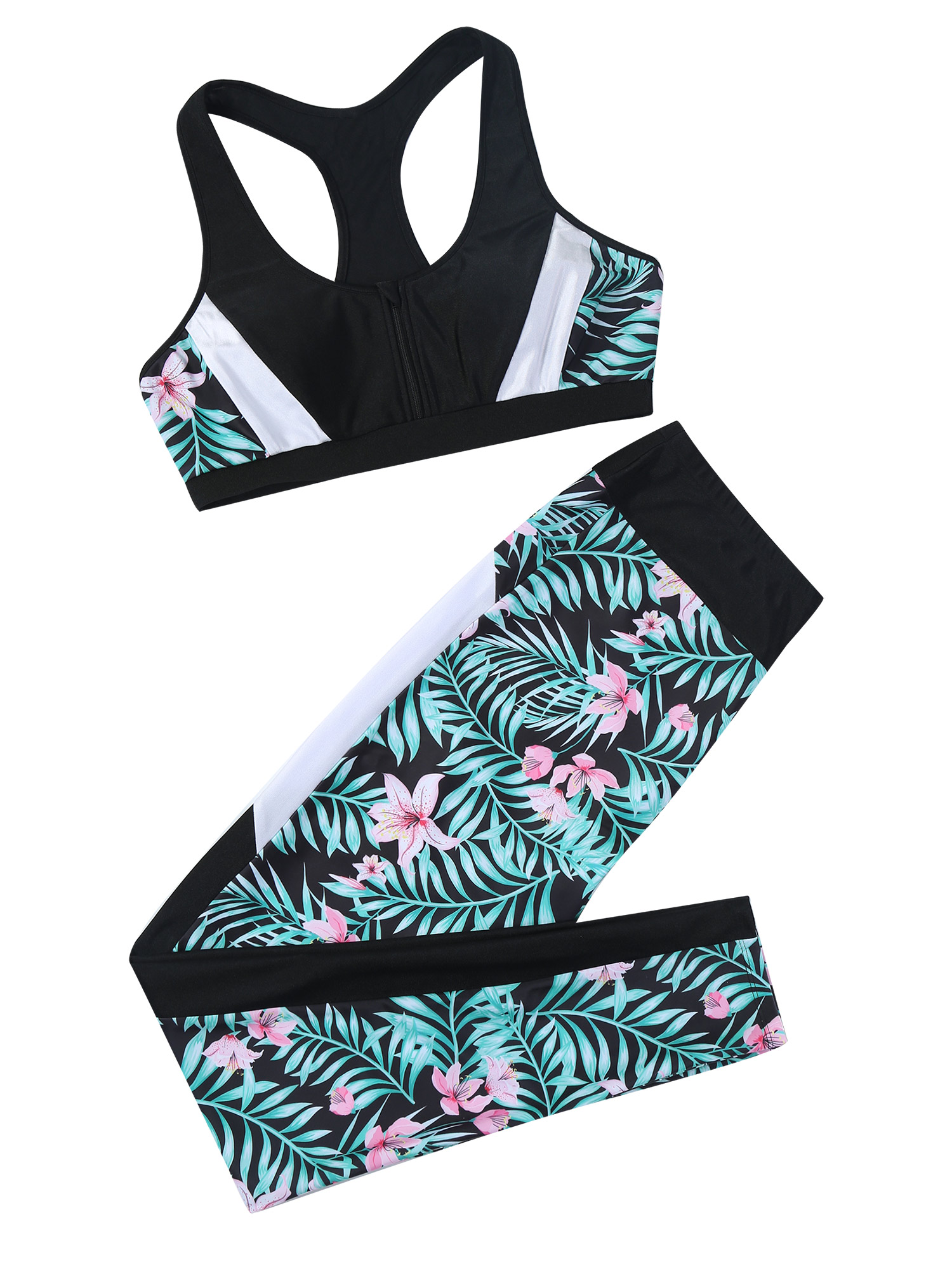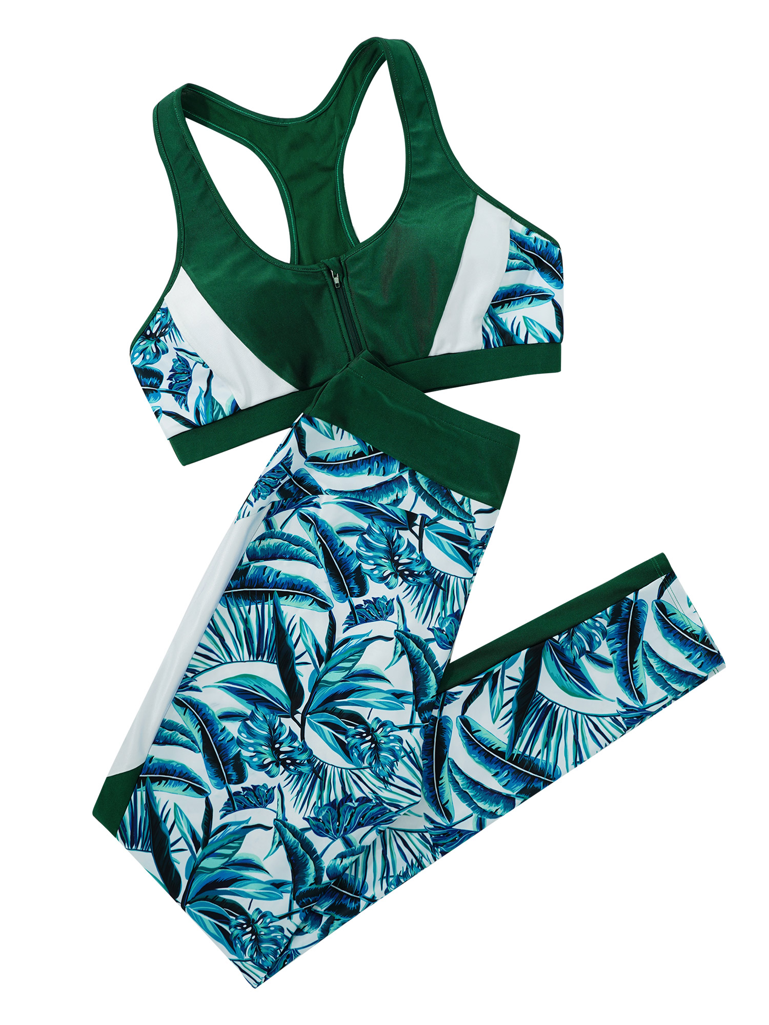 Женский спортивный костюм с верхом на спине и леггинсами.