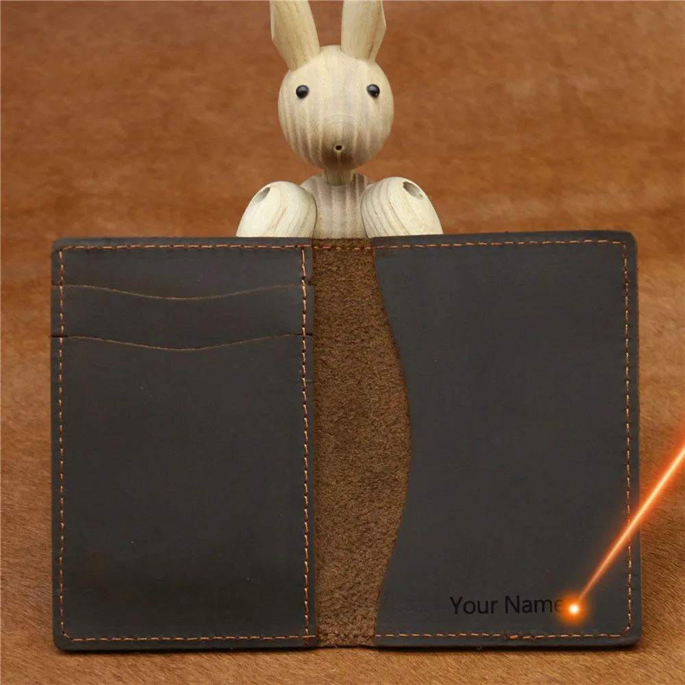 Мужской кошелек Crazy Horse ручной работы из натуральной воловьей кожи, Обложка для паспорта, держатель для кредитных ID карт, футляр для наличных, гравировка логотипа на заказ