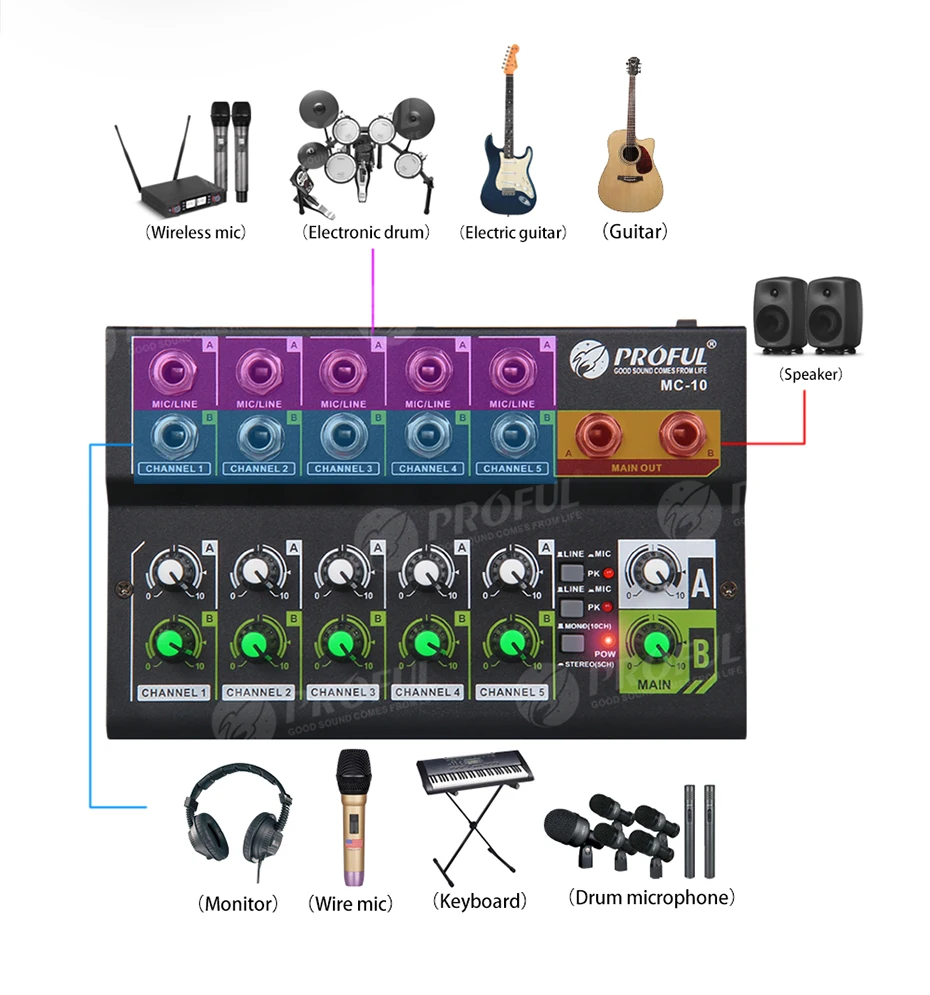 Дебра MC-10 10 каналов портативный мини DJ контроллер аудио расширитель, лёгкое переключение между стерео и подойдет как для повседневной носки, так, для нескольких устройств, сцена, ремешок.