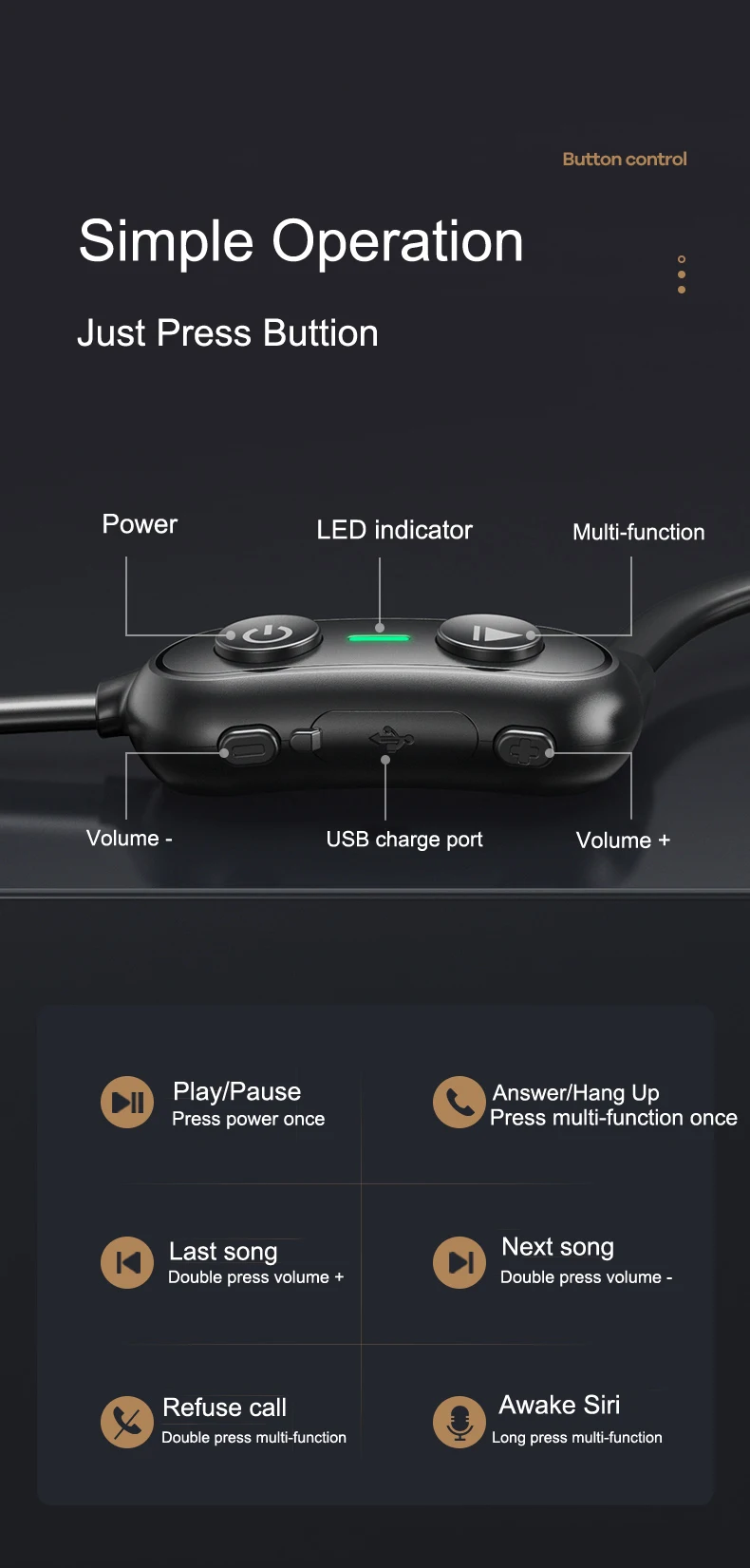 Параметры проводимости наушников: Модель изделия: RB-S33 Версия Bluetooth: V5.0 Расстояние передачи: 10 м Блок привода: композитная титановая Громкая связь → 16 мм Частотная характеристика: 20 Гц ~ 20 кГц Номинальная мощность: 0,5 w Время зарядки: 2 ч Сопротивление: 8 Ом Вес нетто продукта: 35 г Размер зарядного отсека: 135*98 мм