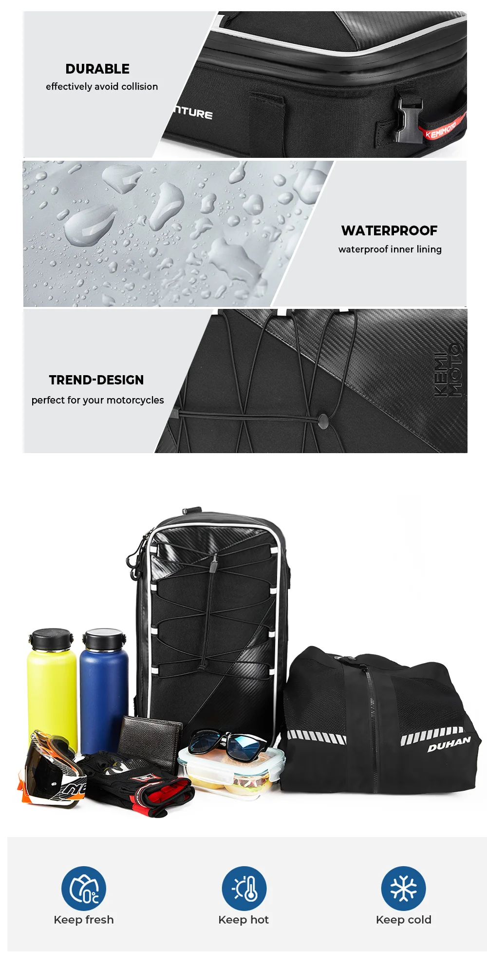 * Расширяется/уплотняется с застежкой-молнией по периметру, расширяется до 20 л максимальной емкости.