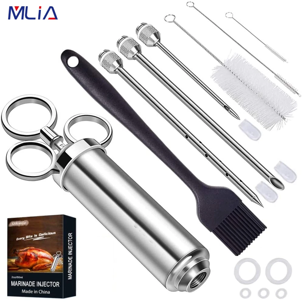 MLIA 2oz сверхмощный 304 Нержавеющая инжектор мяса нержавеющая сталь маринад Инжектор Шприц для барбекю гриль и Турция