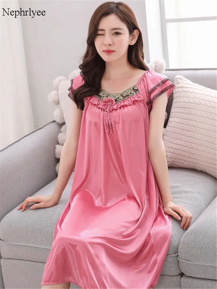 2021 Новая летняя длинная ночная рубашка женская красная шелковая сексуальная ночная рубашка для девочек пижамы большого размера атласная ночная рубашка