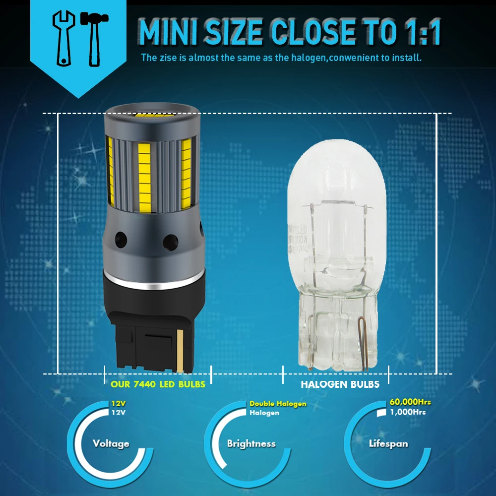 -Встроенный стабильный IC драйвер постоянного тока, более длительный срок службы, может автоматически регулировать ток, встроенный Canbus, может заменить сигнальную лампу поворота без сбоя. Анти-перевспышка и светодиодный чип со стабильной люминесценцией