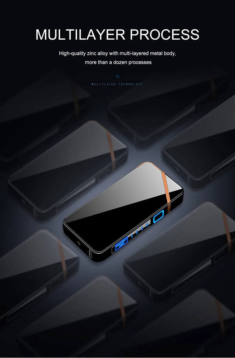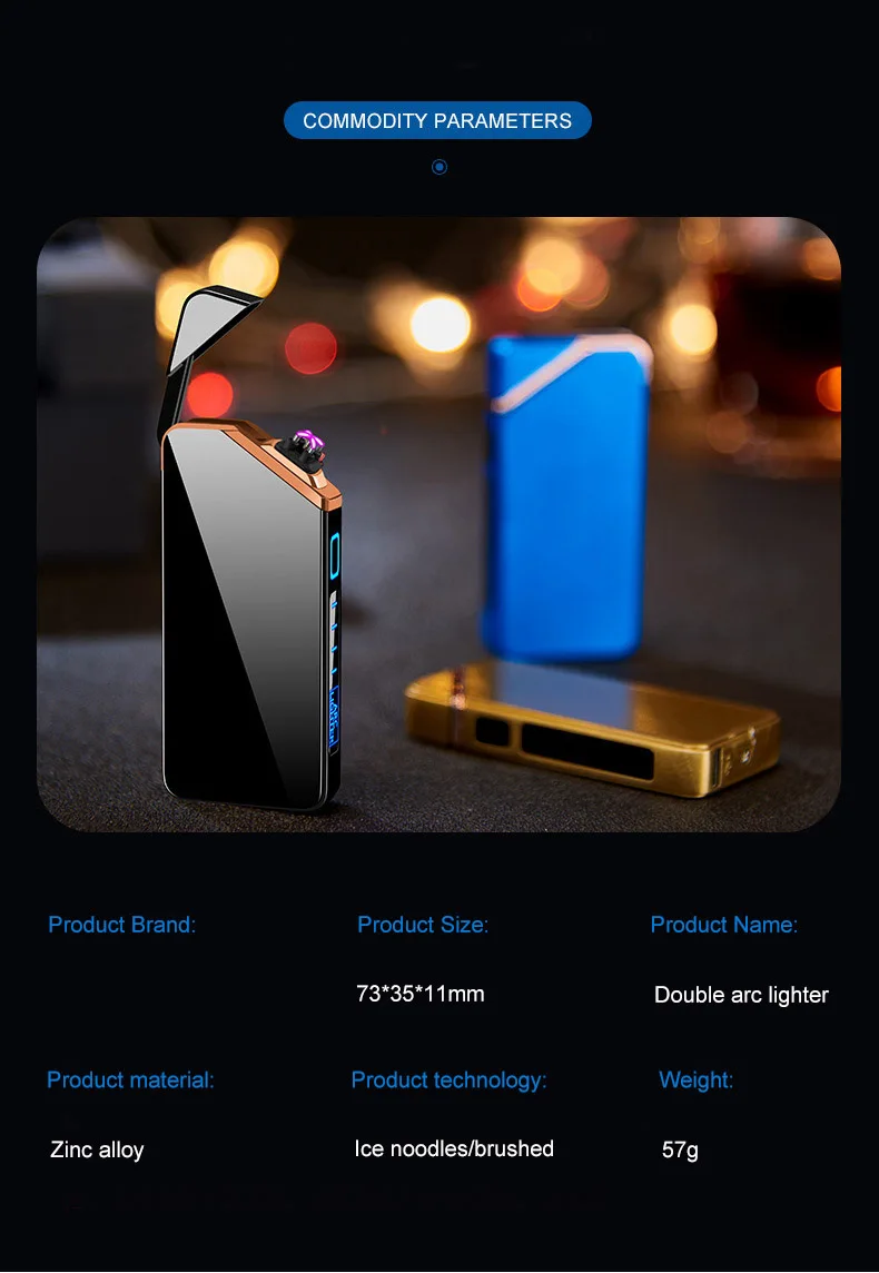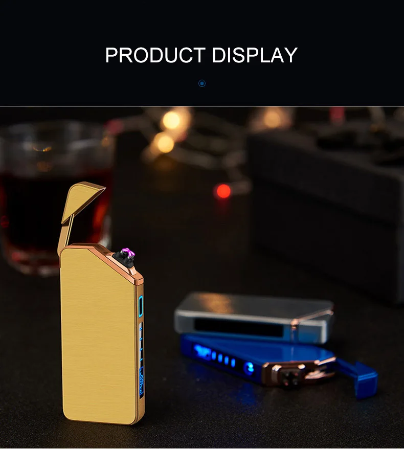 Двойная дуговая электрическая зажигалка, USB перезаряжаемая плазменная Зажигалка для сигарет, для курения, светодиодный дисплей, мужской гаджет, подарок