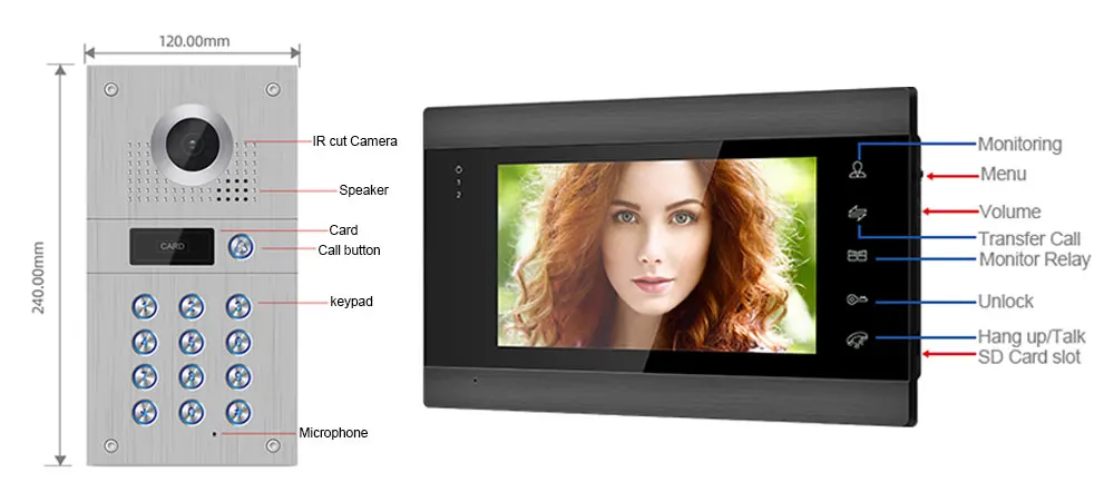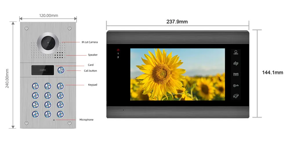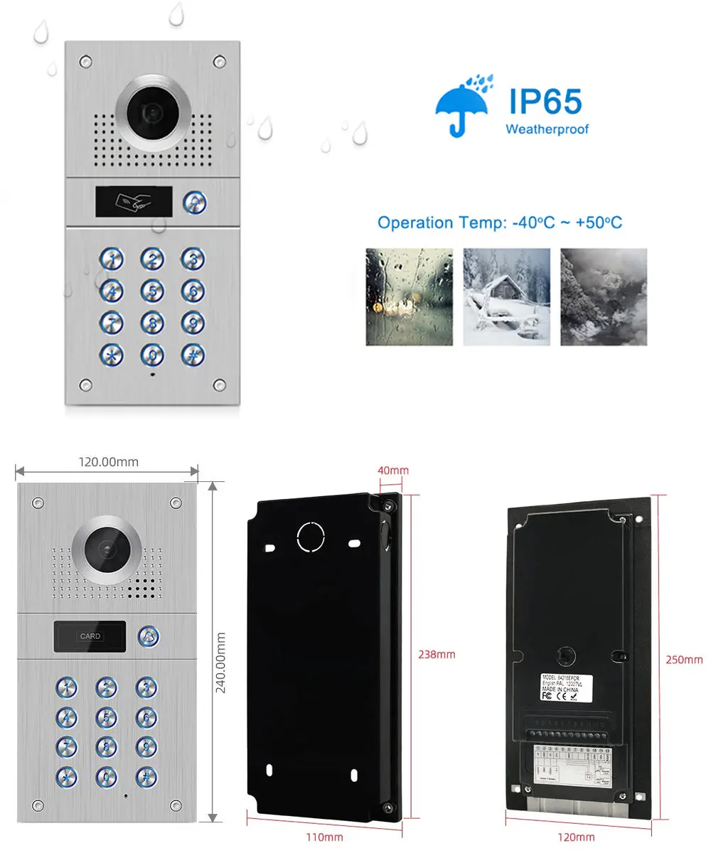 Дверной звонок изготовлен из антикоррозийной панели из алюминиевого сплава, поэтому он имеет защиту от дождя, пыли и вандализма IP65, более того, встроенный ИК-фильтр и ИК-светодиоды для лучшего ночного видения