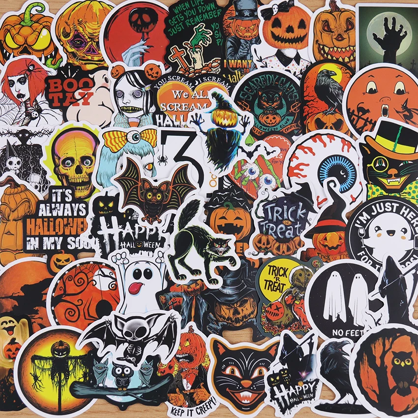 50 шт Хэллоуин Тыква украшения граффити наклейки мобильный телефон Чехол чемодан для скейтборда чехол водонепроницаемые наклейки детская игрушка