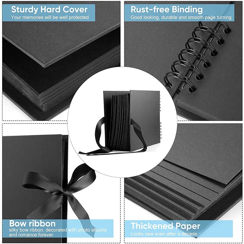 [Высокое качество] альбом для скрапбукинга, можно поворачивать на 360 градусов, открывать, легко смотреть и вставлять. Прочная твердая обложка с 80 утолщенными картонными страницами для долгой защиты ваших воспоминаний.