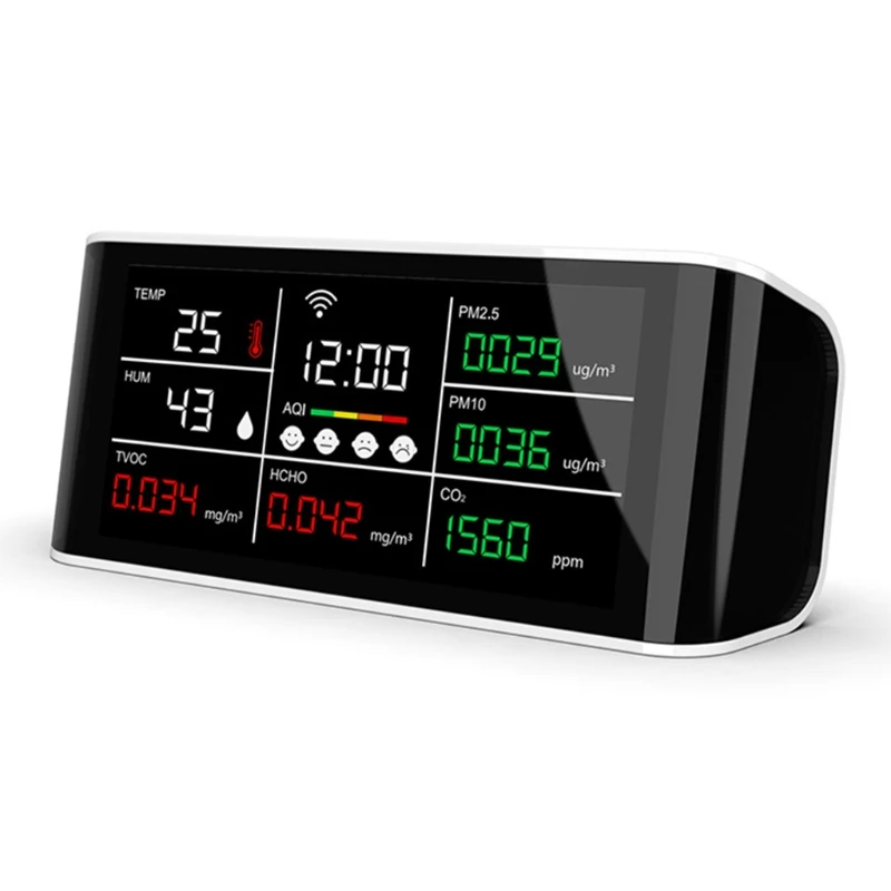 Этот продукт может обнаруживать CO2, PM2.5, PM10, HCHO, TOVC, температуру и влажность для вас, он сочетает в себе датчики в режиме реального времени мониторинга углекислого газа (CO2).