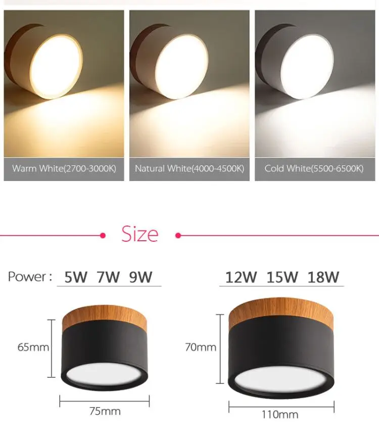 Современный светодиодный светильник Macarone Название продукта: светодиодный светильник на поверхности Цвет корпуса: черный/белый/серый/желтый/розовый/синий/зеленый Основной материал: алюминий + акрил Входное напряжение: AC 200-240V 50 / 60Hz Мощность: 5 Вт 7 Вт 9 Вт 12 Вт 15 Вт 18 Вт Цветовая температура: теплый белый: (2700K-3000K), естественный белый: (4000K-4500K), холодный белый: (5500K-6500K) Размер: 5 Вт 7 Вт 9 Вт: диаметр 75 мм/высота 65 мм 12 Вт 15 Вт: диаметр 110 мм/высота 70 мм Индекс цветопередачи (CRI):> Ra85 Светодиодный чип: Высококачественный чип Световой поток: 95 ~ 110 лм/Вт Срок службы: 30000 ~ 50000 часов Сертификация: CE / RoHS