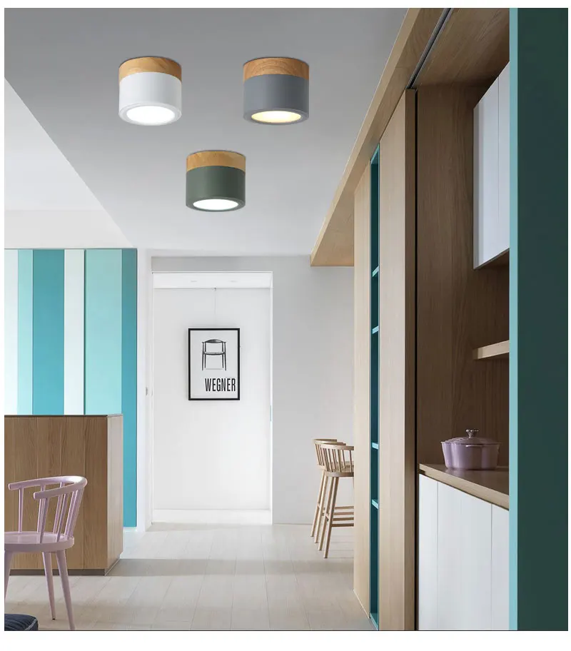 Светодиодный светильник 5 Вт 7 Вт 9 Вт 12 Вт 15 Вт 18 Вт с регулируемой яркостью, Скандинавское дерево, современный поверхностный потолочный светильник, точечный светильник, интерьерный декоративный светильник