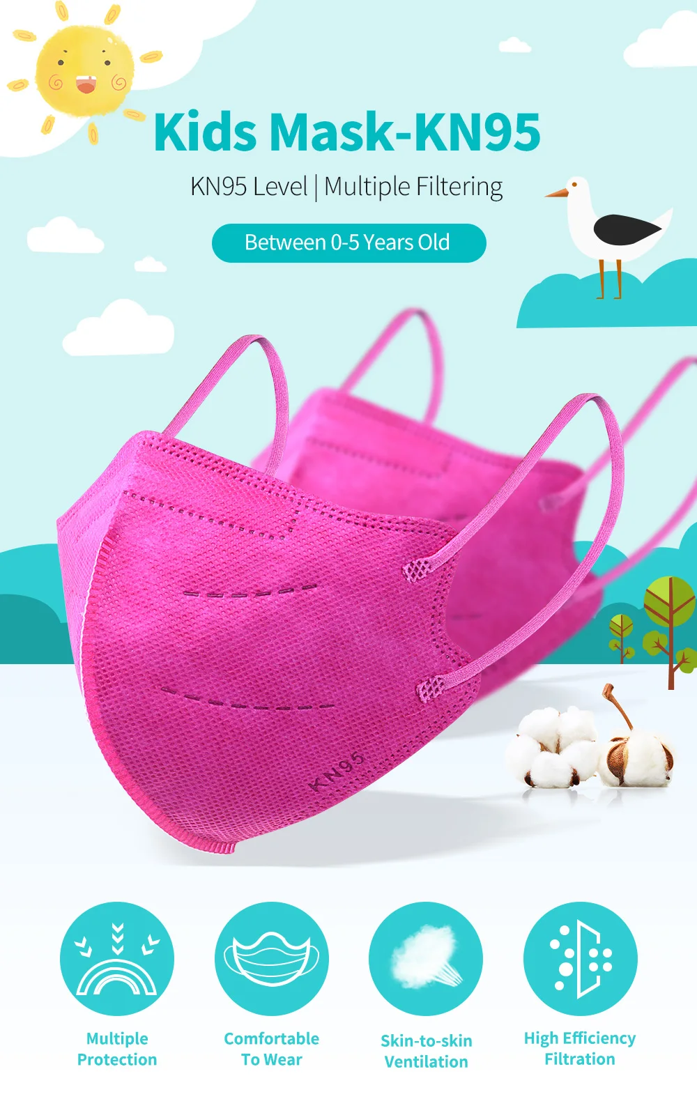 (1) маска для масок 0-5 лет напечатана «KN95»