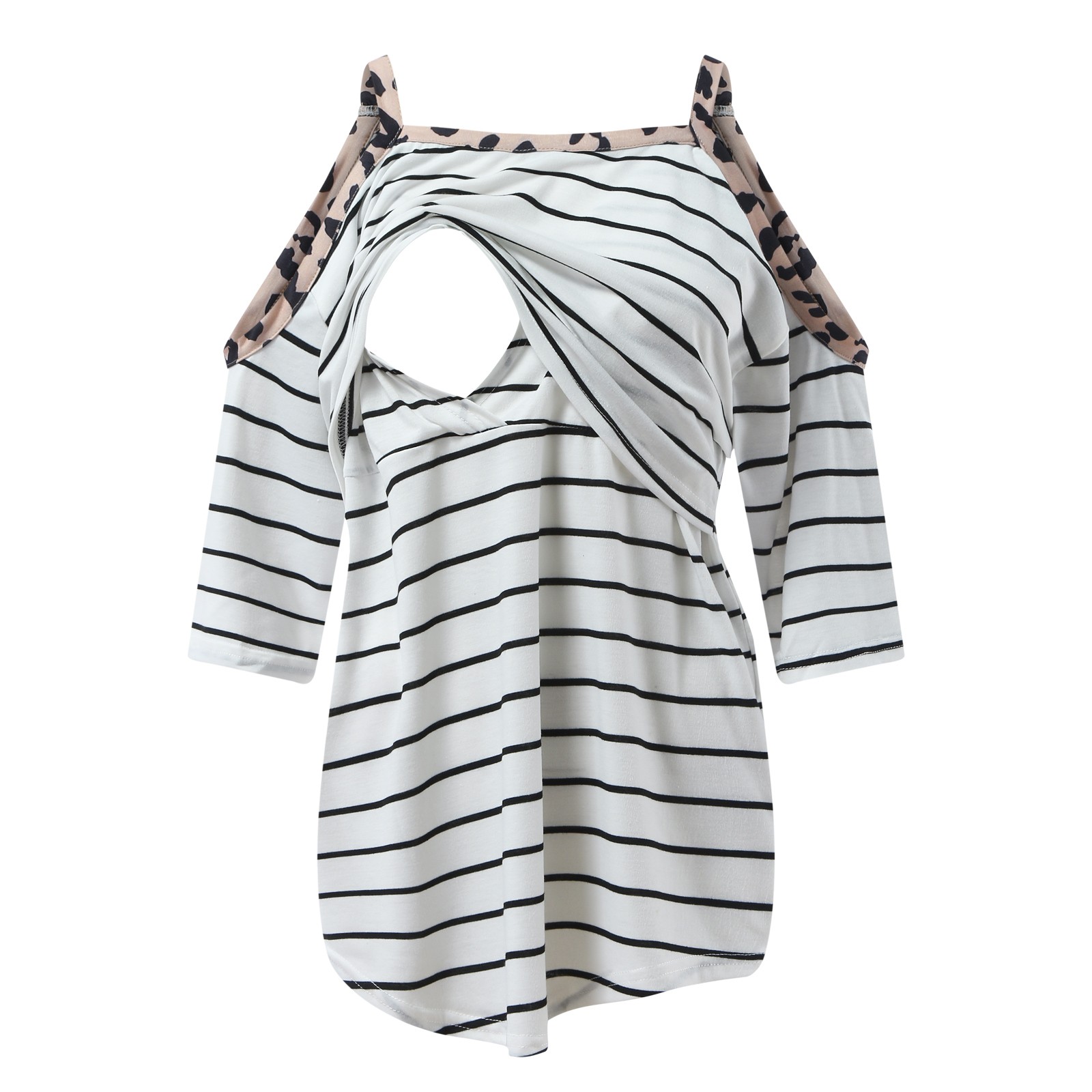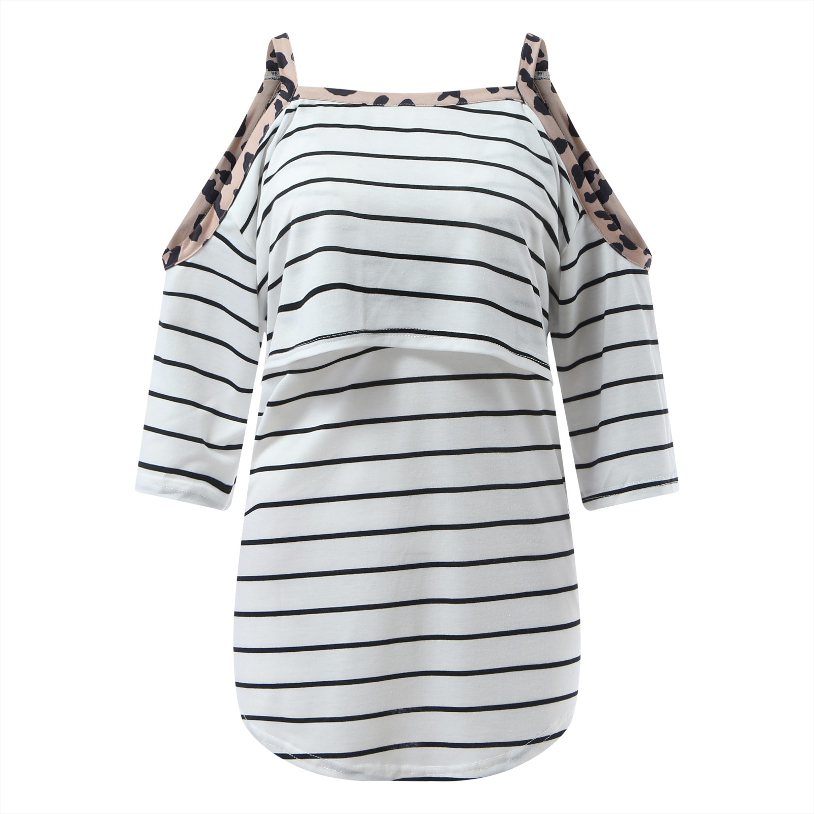 Летняя блузка для беременных с полосатым принтом, модная сорочка de nuit femme, удобная футболка с открытыми плечами, блузка F4