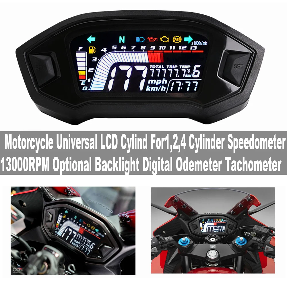 Универсальный электронный спидометр для мотоцикла, цифровой тахометр, приборная панель, измерительный прибор, тач, ЖК-дисплей 13000 об/мин