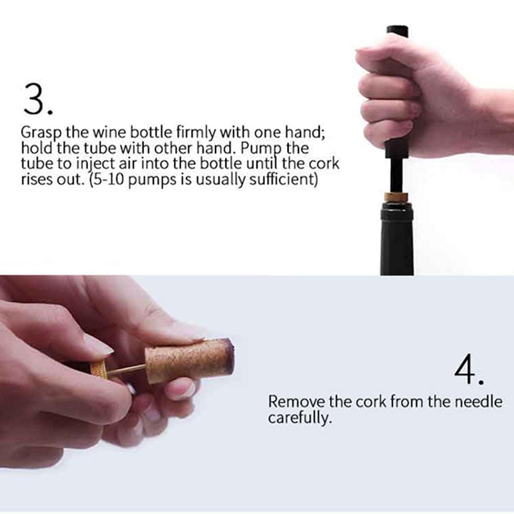 3. Крепко держите винную бутылку левой рукой и наружную трубу штопора правой рукой. Накачивайте вверх и вниз, чтобы впрыскивать воздух в бутылку, пока не услышите «Поп», и пробка выскальзывает из бутылки. (Обычно каждую бутылку вина можно открыть 4-7 раз)