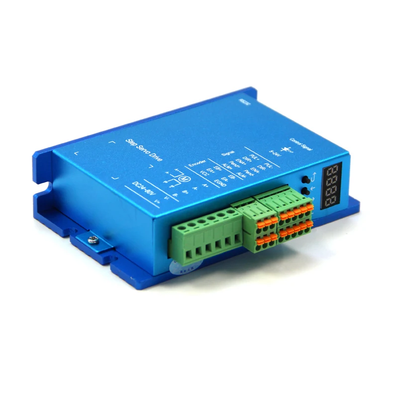 1. Введение Новое поколение DSP digital step closed loop driver, Усовершенствованная технология управления замкнутым циклом вектора принимается, Это полностью решает проблему потери шага традиционного шагового двигателя открытого цикла, И высокая скорость работы шагового двигателя значительно улучшается, Уменьшает степень нагрева и вибрации двигателя, Дальнейшее улучшение скорости работы и точности оборудования, Снизить потребление энергии оборудования. Кроме того, Когда двигатель постоянно перегружен, Драйвер Выводит сигнал тревоги, Он имеет такую же надежность, как и Сервосистема переменного тока. Размеры крепления двигателя полностью совместимы с традиционными сериями 42 и 57 (60) шаговых двигателей, Традиционная схема шагового привода с открытым циклом может быть обновлена без проблем, По сравнению с сервосистемой переменного тока, она имеет высокую стоимость преимущества. Драйвер подходит для всех видов оборудования и инструментов для автоматизации малого и среднего размера, Например: Машина для обработки проводов, лазерная маркировочная машина, высокоскоростной плоттер, небольшие станки с ЧПУ, автоматическое сборочное оборудование и т. д. Эффект применения очень хорош в оборудовании, требующем низкого шума, стабильной работы и высокой скорости отклика. Технические характеристики: 1. Freescale новая 32-битная чип управления двигателем принимается; 2. Усовершенствованная технология управления замкнутым циклом вектора; 3. Светодиодный дисплей цифровой трубки, удобный для настройки параметров и мониторинга состояния работы; 4. Статический ток и динамический ток могут быть установлены произвольно (в пределах 0-6a); 5, может адаптироваться к приводу 42 и 57 (60) серии гибридных замкнутых шаговых двигателей; 6. Фотоэлектрический изолирующий вход/выход сигнала; 7, частота импульсного отклика 200 кГц; 8, 16 передач выбор общего деления, максимальное 256 деление (51200 импульсов/оборотов в минуту); 9. Электронный режим передачи (произвольное значение деления); 10. Он имеет защиту от перегрузки по току, перегрева, перенапряжения и ошибки отслеживания; 11. Режим контроля положения и режим контроля скорости являются необязательными; 12. Есть два режима управления, чтобы выбрать в режиме положения. Электрический индекс: Непрерывный выходной ток: 0 - 6A Входное напряжение питания (постоянный ток): 24-48-80 В постоянного тока Входной ток: 10 - 7 мА-20 мА Частота импульса: 0 - 200 кГц Сопротивление изоляции: 500 m Ω Обеспечивает ток кодировщика: 50 мА Применение: старайтесь избегать пыли, масляного тумана и коррозионного газа Температура: - 10 ℃ - 50 ℃ Влажность: 40-90% относительной влажности Вибрация: 5,9 M / S2 Max Температура хранения: - 20 ℃ - + 80 ℃ Вес: 300 г Примечание: Держите диск крутым (1) надежная рабочая температура водителя, как правило, в пределах 60 ℃, а двигатель в пределах 80 ℃; (2) при установке накопителя попытайтесь установить его на вертикальную сторону, насколько это возможно, вдали от источника тепла и не блокируя вентилятор Воздуховод. При необходимости Установите тепловыделение и вентиляционный вентилятор на электрический шкаф, где установлен драйвер, чтобы сделать электрический шкаф Внешняя конвекция воздуха обеспечивает работу драйвера в надежном температурном диапазоне. Входной порт двигателя и мощности: A +: A-phase motor обмотка +, белый; A -: фаза обмотки двигателя, зеленый; B +: