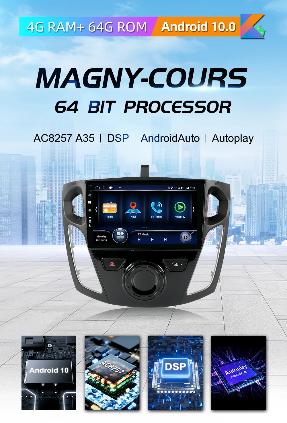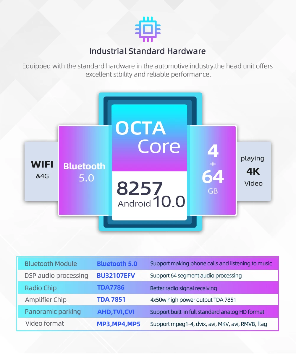 ▲-На базе Android 10.0 операционная система-AC8257 A35 /Octa Core /4 ГБ ОЗУ/64 Гб ПЗУ-Бесплатная камера заднего вида-Максимальная емкость, не более «недостаток» в памяти, делает обработку данных более эффективной, в то время как режим ускорения оптимизирован быстро и плавно