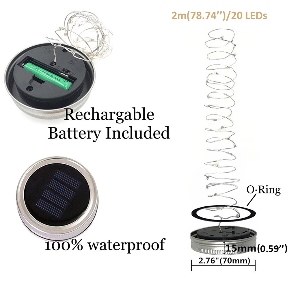 -Размер: крышка банки Mason: 7x7x1, 5 см/2,76x2,76x0,59 дюйма; Длина гирлянды: 2 м/78,74 дюйма.