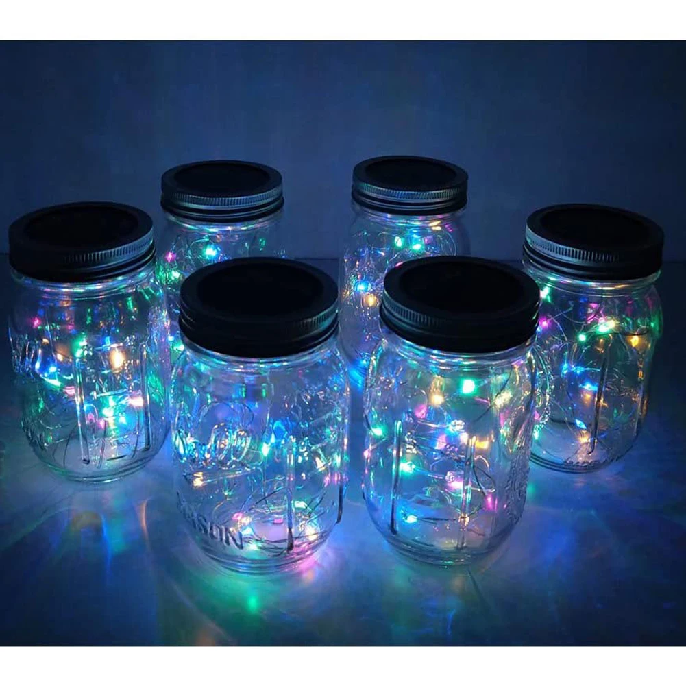 Набор светильников mason jar на солнечной батарее включает в себя гирлянду длиной 2 м с 20 светодиодами, крышку и ручку mason jar. Подвесная банка светильник s со встроенным датчиком освещенности красивее и ярче других, очень подходит для вечеринок, свадеб и многих других случаев, чтобы создать теплую и романтическую атмосферу.