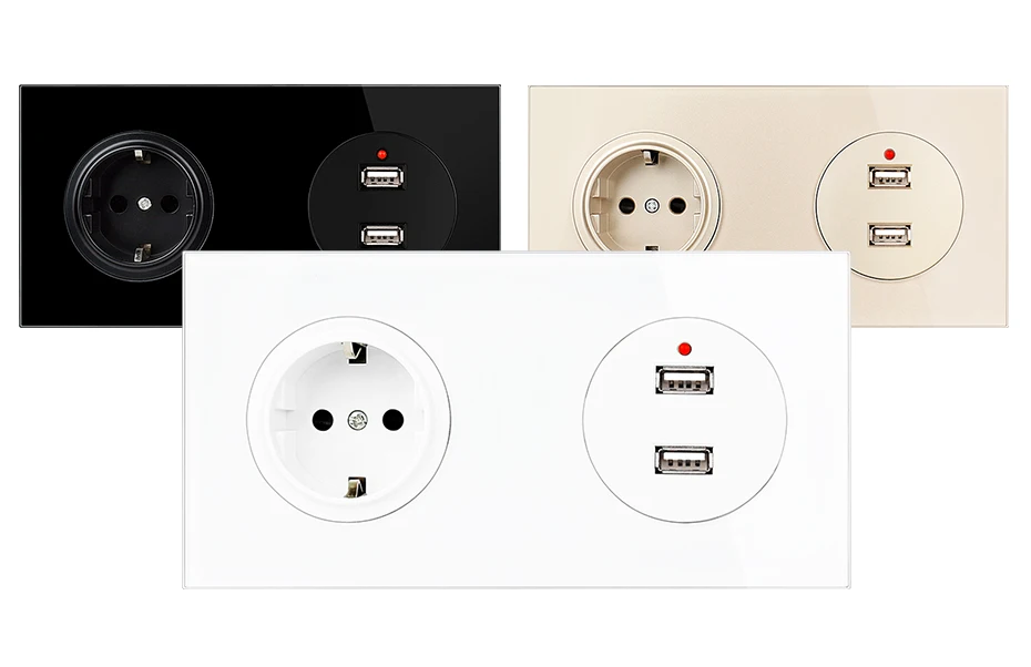 UNKAS 16A настенная розетка стандарта ЕС + гнездовой двойной порт для зарядки USB 3,0 172 мм * 86 мм выход из закаленного хрустального стекла
