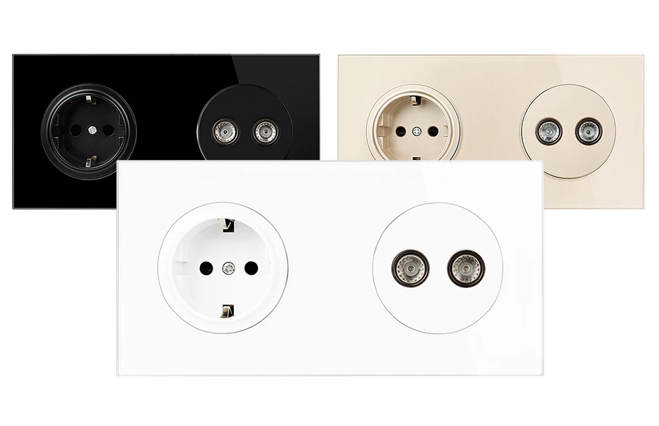 Настенная розетка UNKAS стандарта ЕС + гнездовой двойной спутниковый кабель, разъем для телевизора, 172 мм * 86 мм, выход из закаленного хрустального стекла