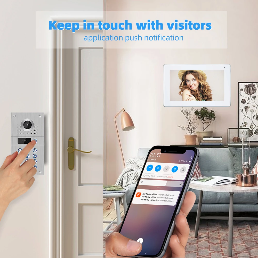 Tuya smart 10 дюймов беспроводной Wifi смарт IP видео дверной звонок Домофон Система 2 сенсорный экран монитор с 1080P проводной пароль разблокировка камеры