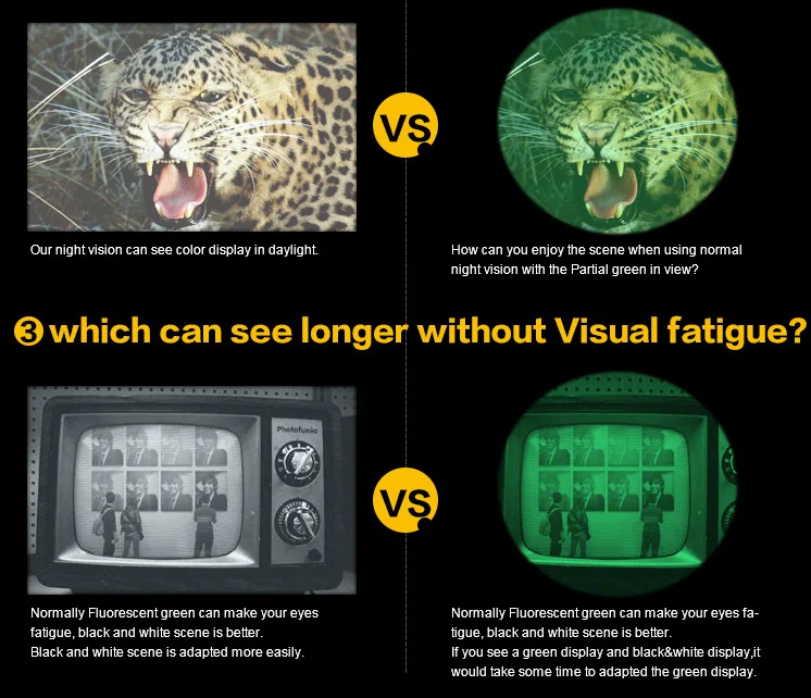 [Высокое разрешение]Cmos-датчик обеспечивает четкий обзор до 3х увеличений, обеспечивает высокое разрешение красочных изображений. Инфракрасные осветители позволяют наблюдателям четко видеть в полной темноте.