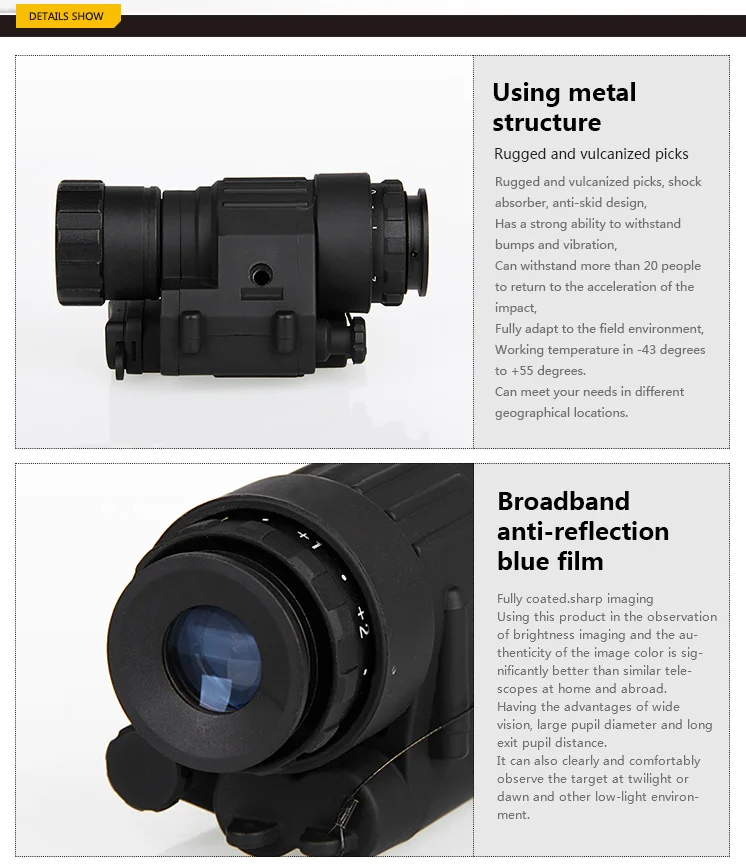 [Широкое видение]Широкоугольный дизайн, отличная производительность при наблюдении за движущимися мишенями. Новое поколение трубки для улучшения изображения, значительно повышает производительность инструмента, также может видеть цель почти в черном цвете.