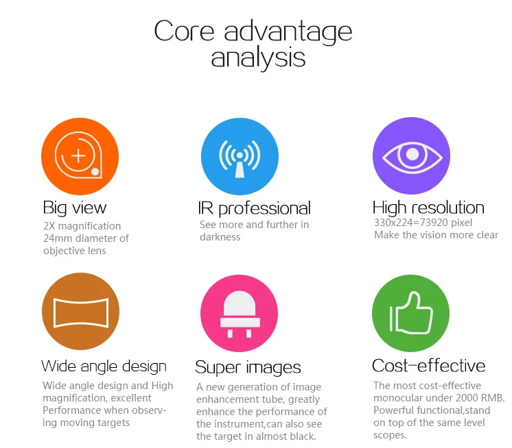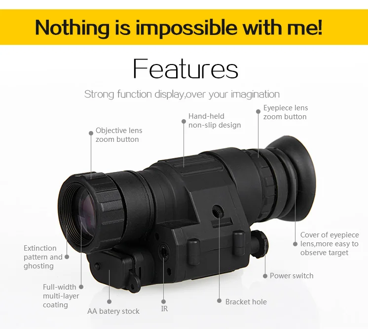 Продукт имеет цифровые функции, Полные функции, может использоваться в качестве телескопа в дневное время, полноцветный выход экрана дисплея; Когда инфракрасный светильник включен ночью, дополнительный светильник-черно-белый экран, который может снимать фотографии и видео наблюденных объектов, И имеет свою функцию воспроизведения, и может непосредственно наблюдать за содержанием, взятым на оборудовании.