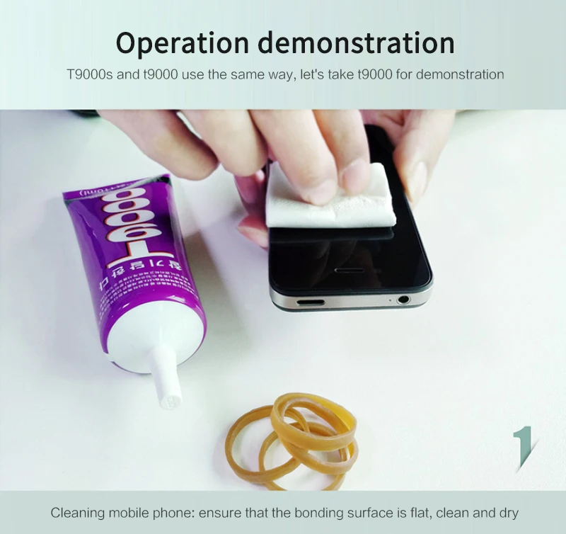 t9000 adhesive can paste more materials, it is suitable for metal, glass, ceramics, stone, bamboo, wood, cloth, leather, PE, PP, PVC, ABS, nylon, sponge, film, fabric, electronic components, plastics, rubber , Fiber, paper, mobile phone frame, LCD screen, middle frame, frame, bracket, main advantages: low odor, sticky acrylic does not corrode.