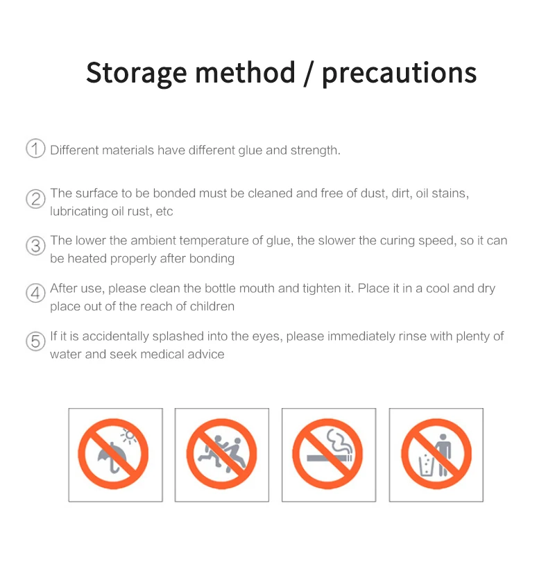 8. When the product is not in use, put the cap on the bottle to prevent the glue from solidifying after contact with air