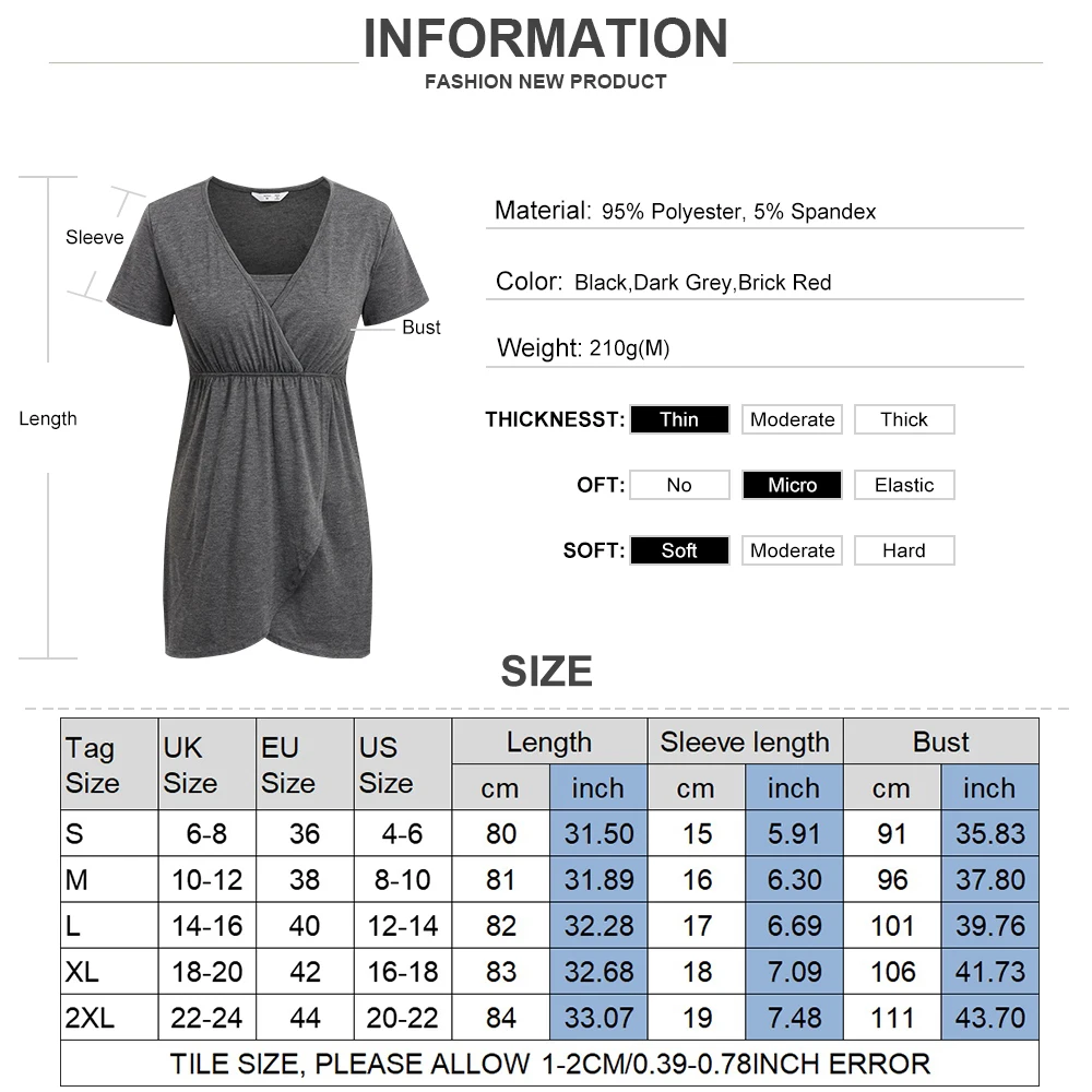 Характеристики продукта: Основной материал: полиэстер, спандекс Популярный элемент: кормление грудью, уход Повод: повседневный, повседневный Стиль: повседневный Длина: короткая Вырез горловины: круглый вырез Длина рукава: короткий рукав Узор: Сплошной Сезон: четыре сезона Размер: S,M,L,XL,2XL Уход За Одеждой: ручная стирка, машинная стирка Инструкции по уходу: Стирать перед ноской Холодная бережная машинная стирка Не отбеливать КАПЕЛЬНАЯ сушка/отжим сухой Не стирать светлыми цветами Содержимое упаковки: 1 шт. платье Об этом товаре (мы стремимся показать вам точную информацию о товаре) 1. Пожалуйста, ознакомьтесь со ссылкой на размер, чтобы найти правильный размер. 2. Может быть разница в цвете s светильник ly из-за световой съемки. 3. Замеры сделаны вручную, поэтому возможны отклонения на 1-3 см (примечание 1 см = 0,39 дюйма) Спасибо за понимание. Таблица размеров: