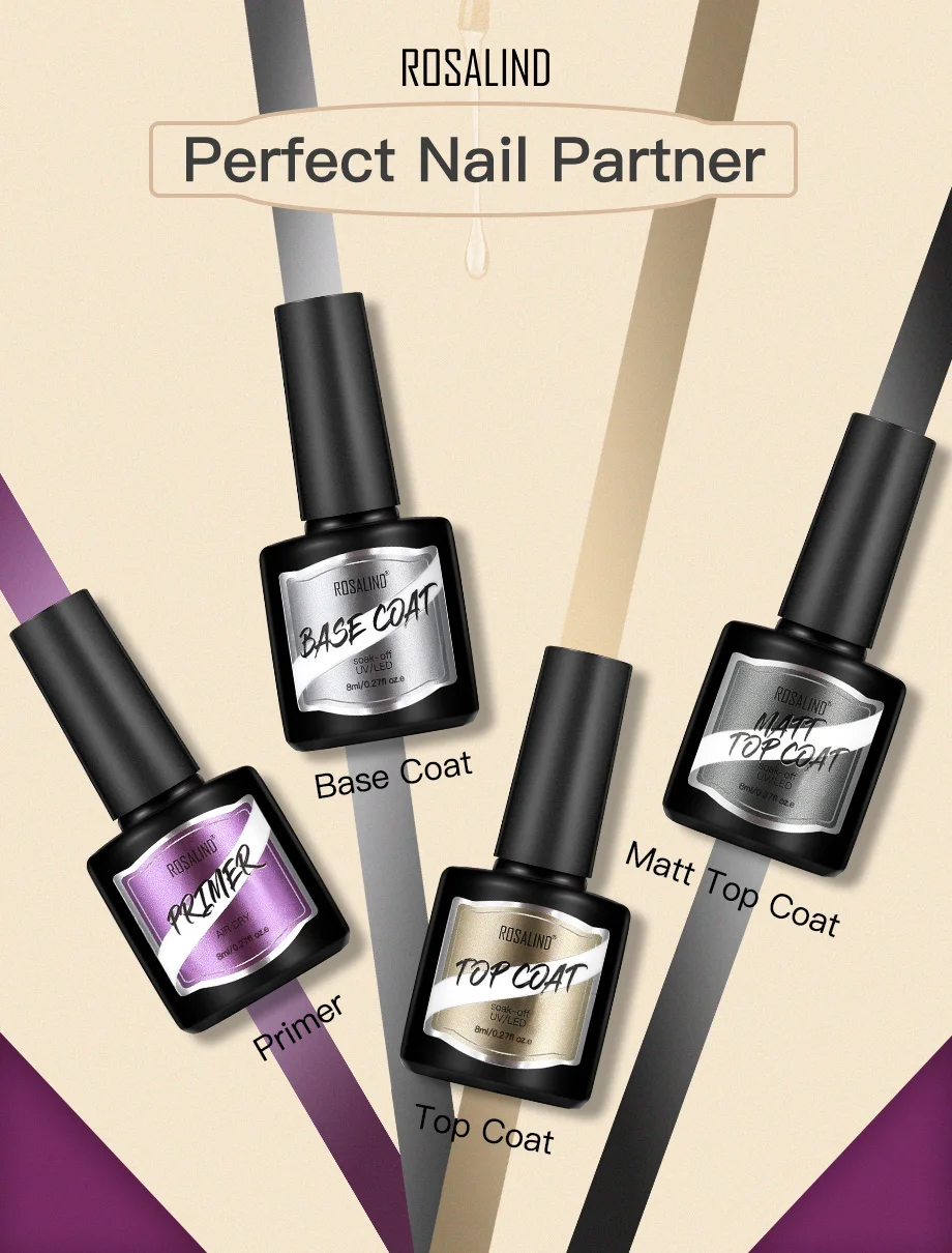 ROSALIND грунтовка для ногтей основа и верхнее покрытие KitMattTopCoatGel8mlBright матовая для дизайна ногтей светодиодный/УФ-лампа
