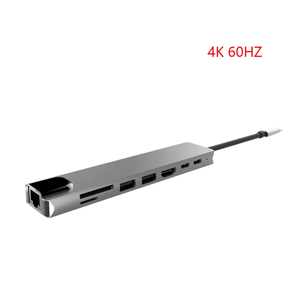8 в 1 USB-C концентратор 4K 30HZ HD USB 3.0 алюминиевый сплав адаптер портативный ноутбук PD зарядка SD и TF кардридер RJ45